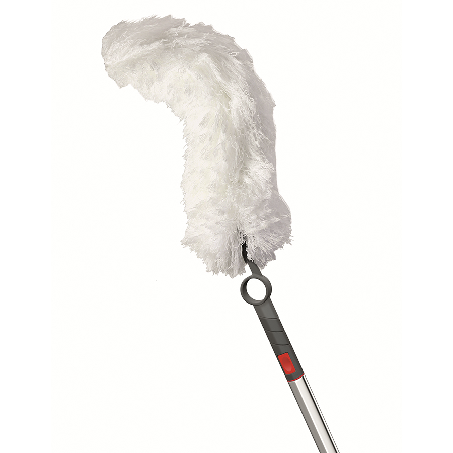 Подвижное основание для швабры, изменяющее уровень наклона швабры, с насадкой-тряпкой из микрофибры, которая выдерживает до 300 стирок при температуре до 60˚, – универсальный помощник для дома. Сменная насадка из жесткой микрофибры предназначена для интенсивной влажной уборки, эффективно справляется со сложными пятнами и твердой грязью, не царапая пол. Гибкая метелка для пыли с насадкой из микрофибры c разделенными волокнами притягивает пыль при помощи электростатической силы, собирает ее, не позволяя подниматься в воздух. Насадка из микрофибры Bucket обеспечит глубокую очистку любых напольных покрытий: ламината, линолеума, кафеля или паркета. Она идеально подходит для влажной уборки. Раздвижная ручка для швабры в комплекте с гибкой штангой облегчат уборку в труднодоступных местах. Телескопическая система позволяет раздвинуть штангу до 160 см. Выполненная из прочной нержавеющей стали ручка устойчива к механическим воздействиям и коррозии. В комплекте с гибкой штангой 40 см ручка эффективно справится с любыми загрязнениями даже в труднодоступных местах. Удобный механизм фиксирует две части в раздвижном положении, препятствуя самопроизвольному сложению. Аксессуар дополнен пластиковым колпачком с кольцом для подвешивания.