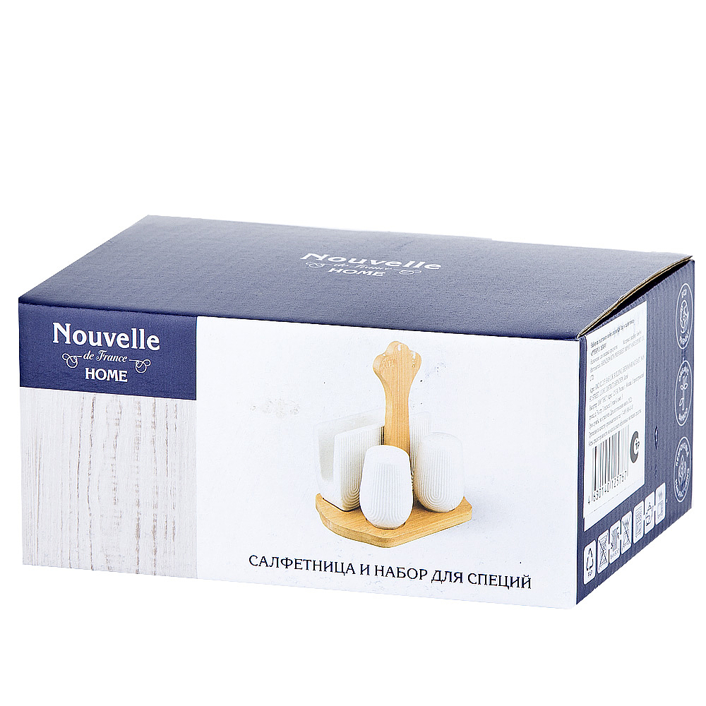 Солонка - 1 шт, перечница - 1 шт, салфетница - 1 шт, подставка - 1 шт