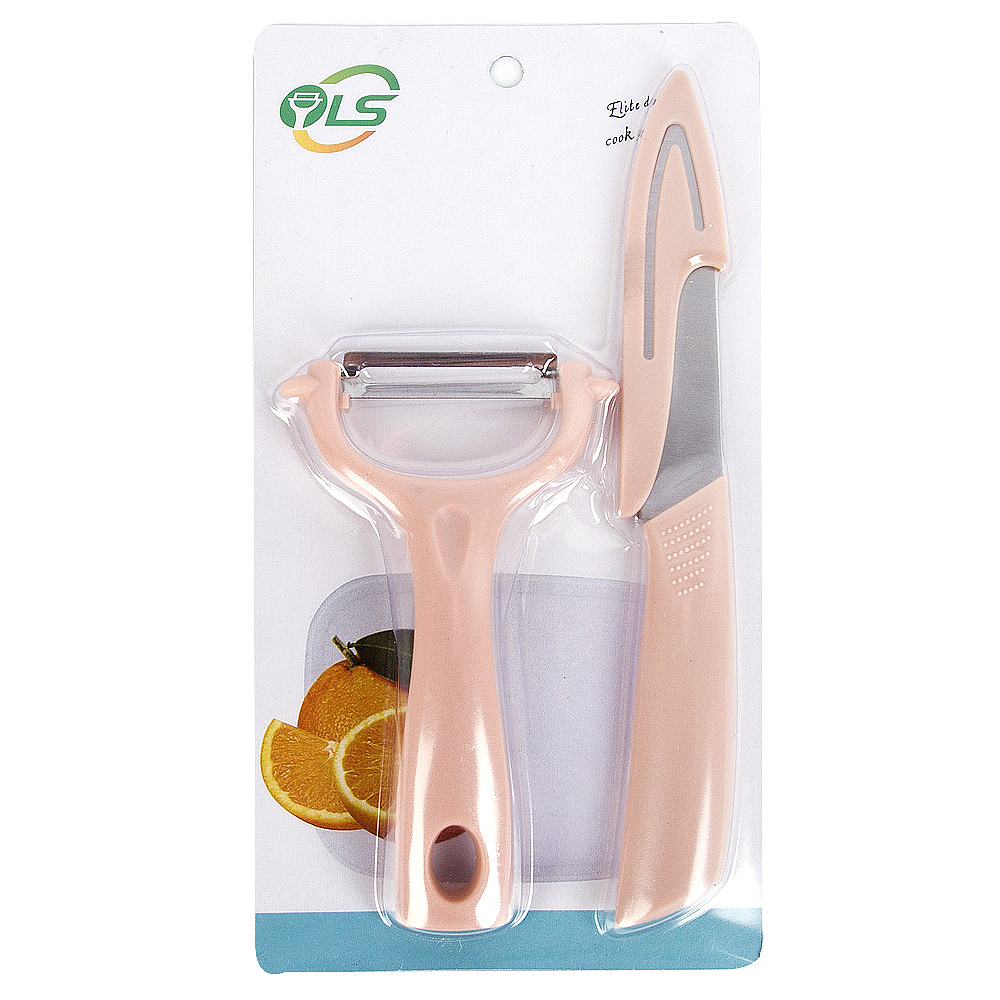 Набор овощечистка и нож для фруктов и овощей h=15/18.5см. (4вида) (нержавеющая сталь, полипропилен) (упаковка с хедером)