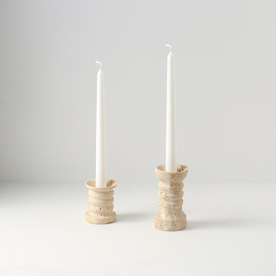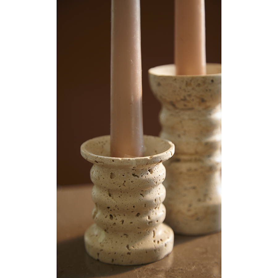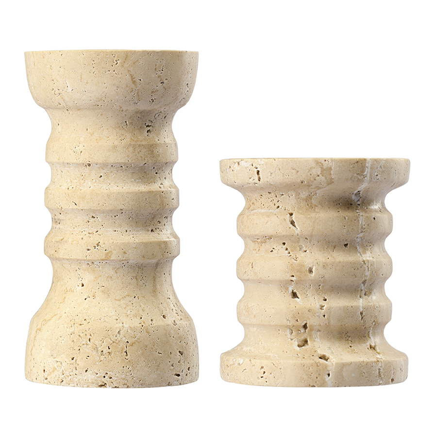 Набор из двух подсвечников Travertin – роскошное дополнение как для традиционного, так и для современного интерьера, способное придать пространству благородный вид и индивидуальный стиль. За счет шлифовки и полировки поверхность имеет схожесть со структурой дерева или натурального камня, сохраняет эстетичный внешний вид, обладает высокой прочностью и долговечностью.