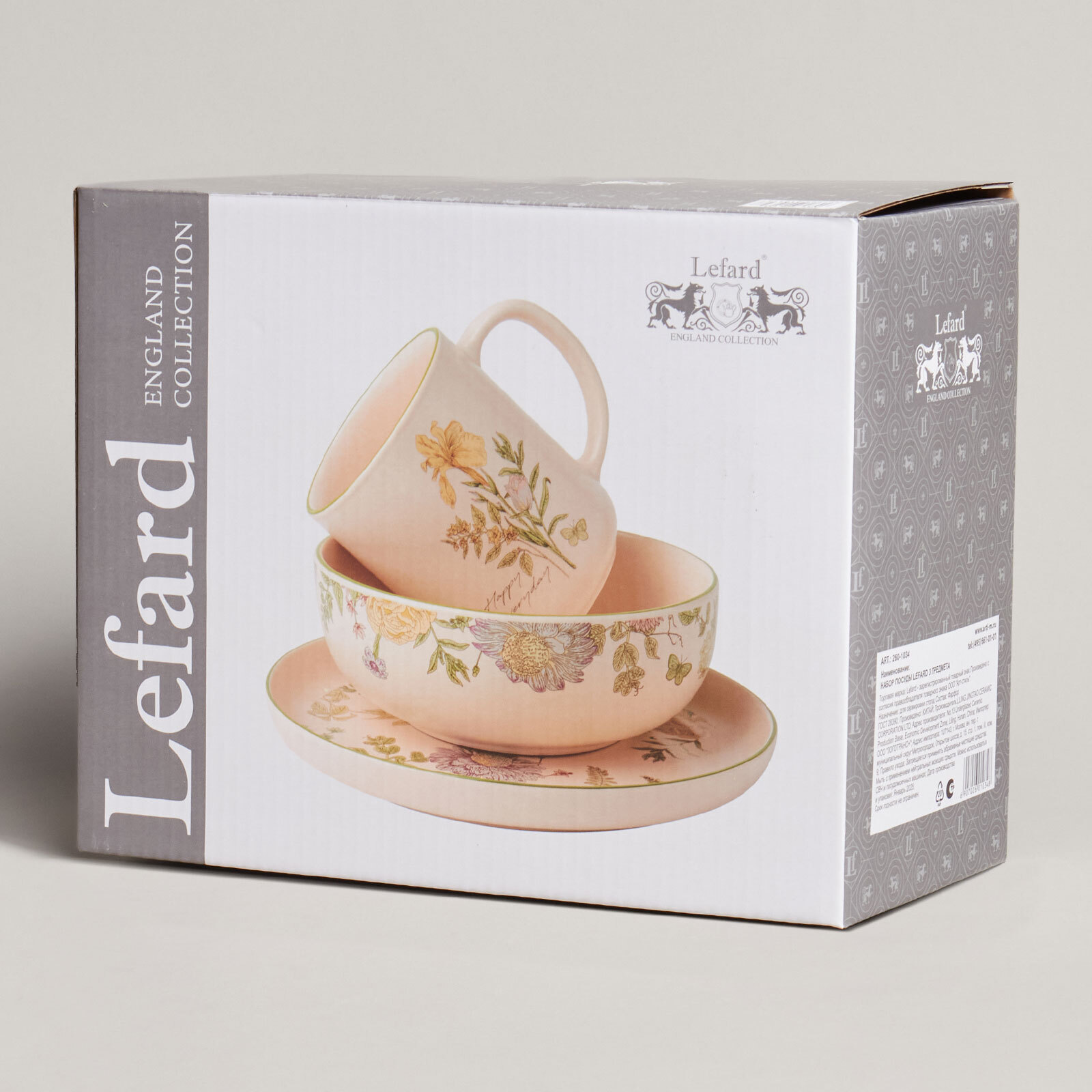 ТМ Lefard предлагает высокотемпературную фарфоровую посуду из натуральных материалов. Стильные цвета хорошо сочетаются и дополняют друг друга. Посуда сделает современным любой интерьер. Оригинальные неправильные формы и оптимальные размеры. Изделия износостойки и хороши для ежедневного использования. Прошла сертификацию. Безопасна для контакта с пищевыми продуктами. Можно смело использовать в микроволновой печи, ставить в холодильник, мыть в посудомоечной машине. Комплектность: тарелка 21,5 см - 1 шт., салатник - тарелка суповая 14,2 см - 1 шт., кружка 325 мл - 1 шт.