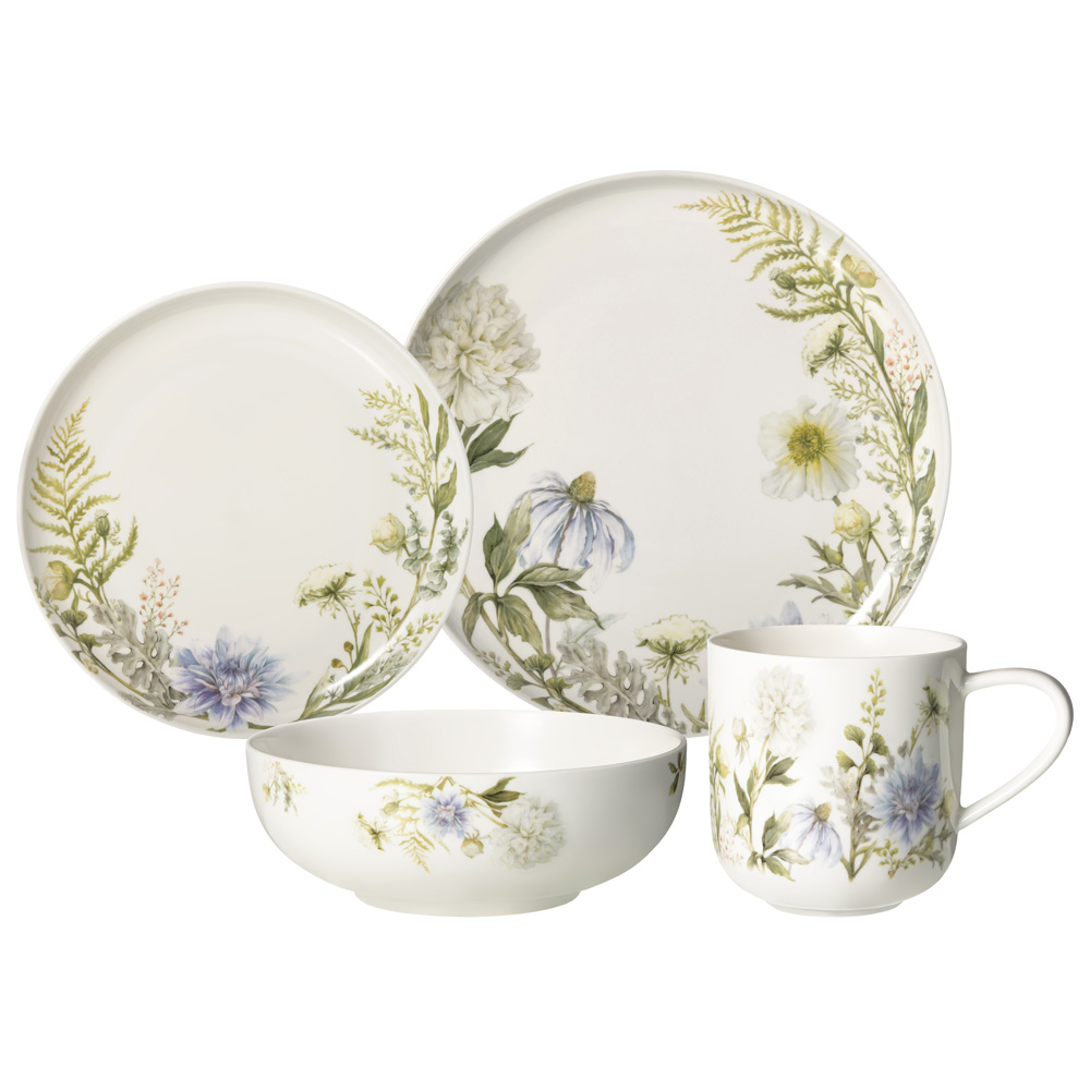Посуда на каждый день от ТМ LEFARD "GRASSES" порадует модными формами тарелок с высоким бортиком, салатником и кружкой, декорацией с любимыми полевыми цветами и травами, отличным качеством из упрочненного фарфора. Посуда прошла сертификацию, безопасна для пищевых продуктов. Можно смело ставить в микроволновую печь и использовать в посудомоечной машине.