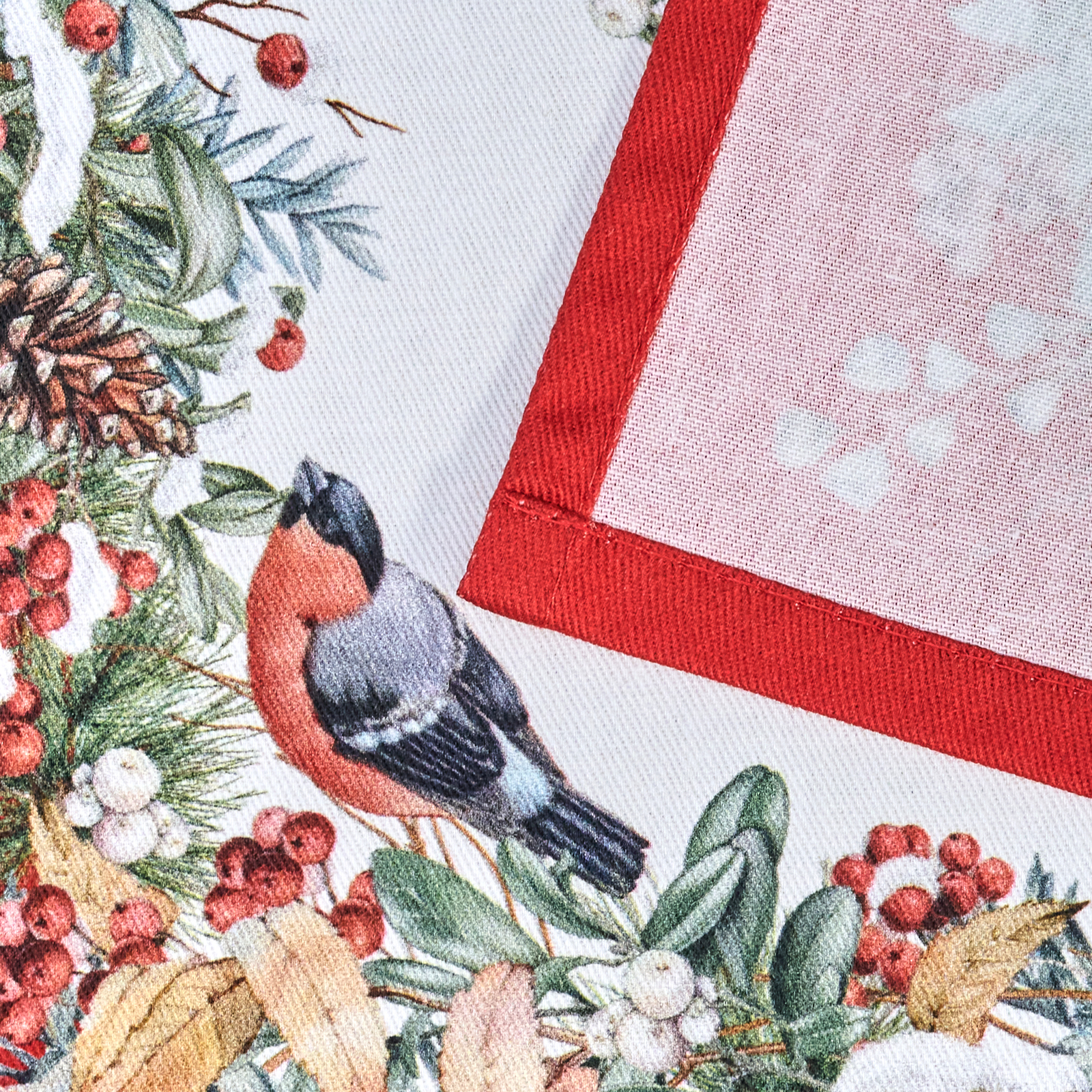 Салфетки выполнены по технологии цифровой печати: каждый штрих рисунка прорисован чётко, цвета — насыщенные и устойчивые к стирке. Яркий принт с зимним мотивом украсит кухню, гостиную или дачу, добавив уюта и праздничного настроения. Салфетки безопасны, гипоаллергенны, экологичны и рассчитаны на многократное использование.