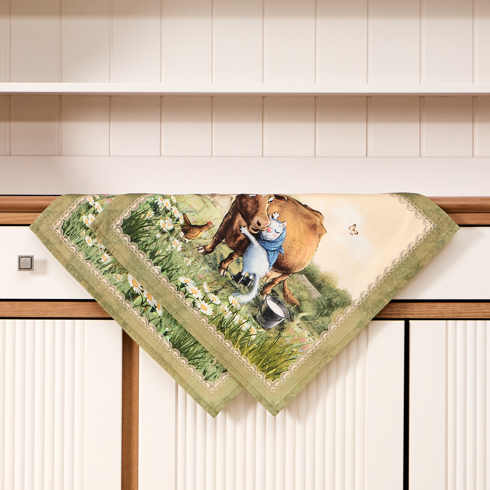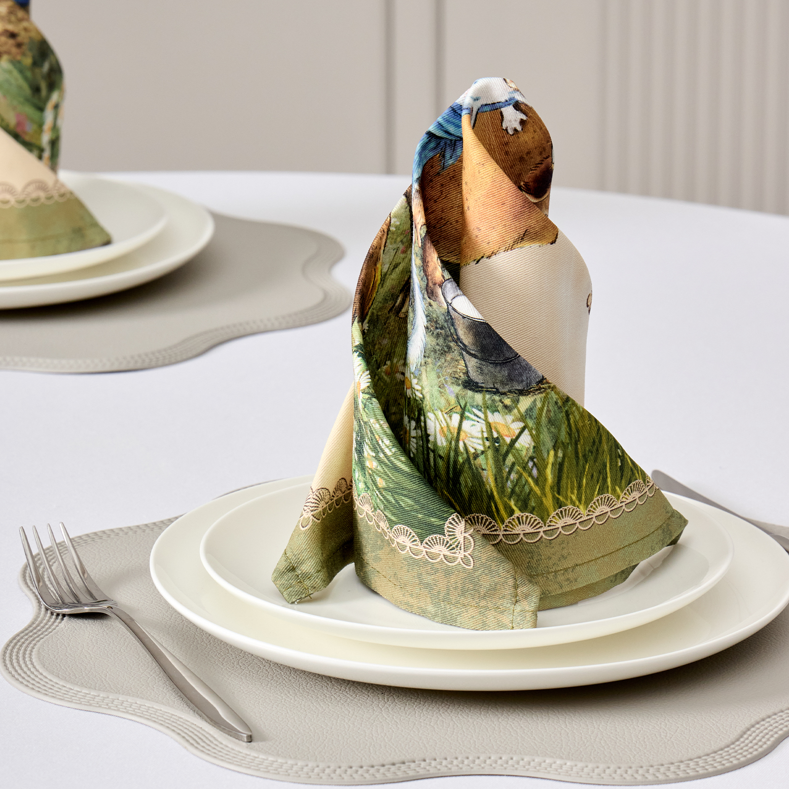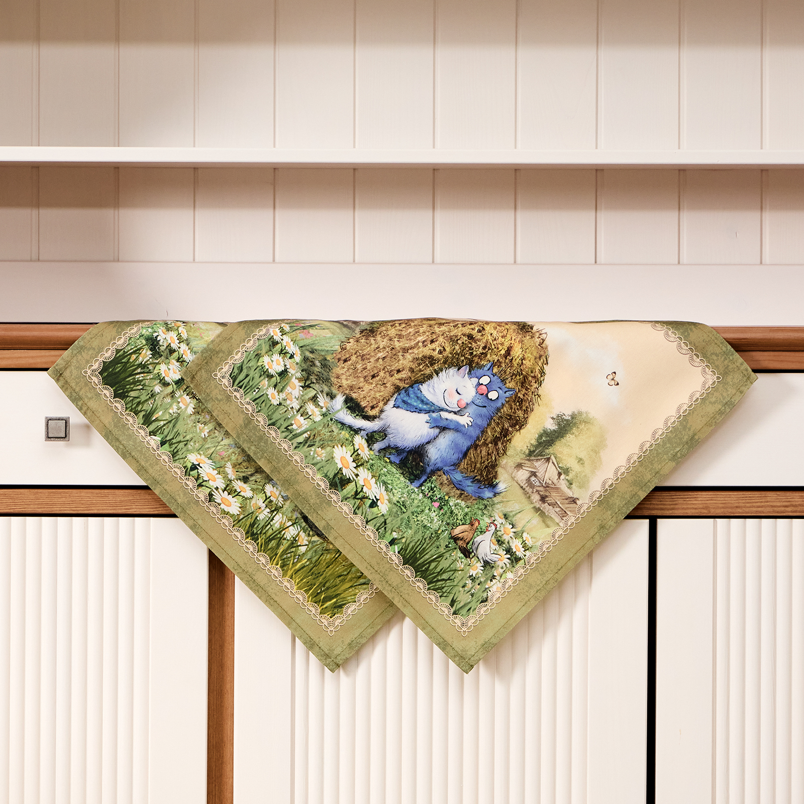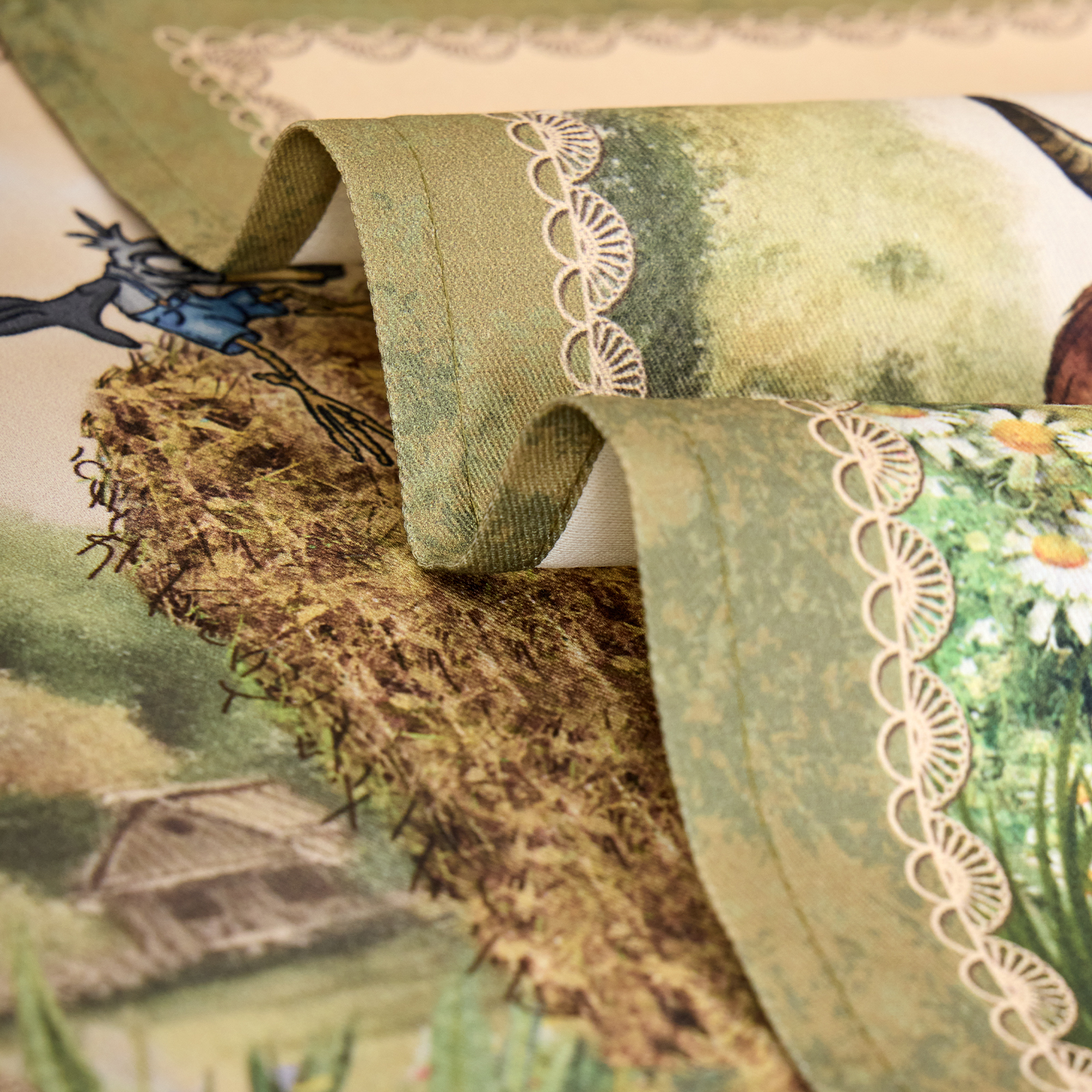 Особым направлением бренда «SANTALINO» является изготовление столового белья (скатерти, салфетки, дорожки (раннер), плейсметы, полотенца, фартуки) по эксклюзивным дизайнам наших художников, воплощённых в цифровой печати, на современном оборудовании. Для пошива изделий используются только натуральные материалы 100% хлопок, плотность ткани составляет 190 гр\м2, она имеет приятную структуру в мелкий рубчик и называется твил, отличается хорошей капиллярностью (впитываемость влаги), драпируемостью, износостойкостью, ткань проходит процесс каландрирования, что делает её более плотной и придаёт лёгкий атласный блеск, предотвращает образование так называемых «катышек» т.е. уменьшается пилингуемость ткани. Цифровая печать позволяет перенести на изделия не только всё богатство красок и оттенков, но и придать особую прочность крашению, ткань не теряет своей яркости даже после 100 стирок. Изделия легки и неприхотливы в уходе, стирать нужно при температуре 40С, гладить при температуре от 110-170С с отпариванием, но нельзя подвергать хлорному отбеливанию. Для удобства эксплуатации на ряд изделий, такие как фартуки, скатерти, дорожки может наноситься водогрязеотталкивающая пропитка, которая не влияет на внешний вид изделия, но позволяет избежать сильного загрязнения при использовании.