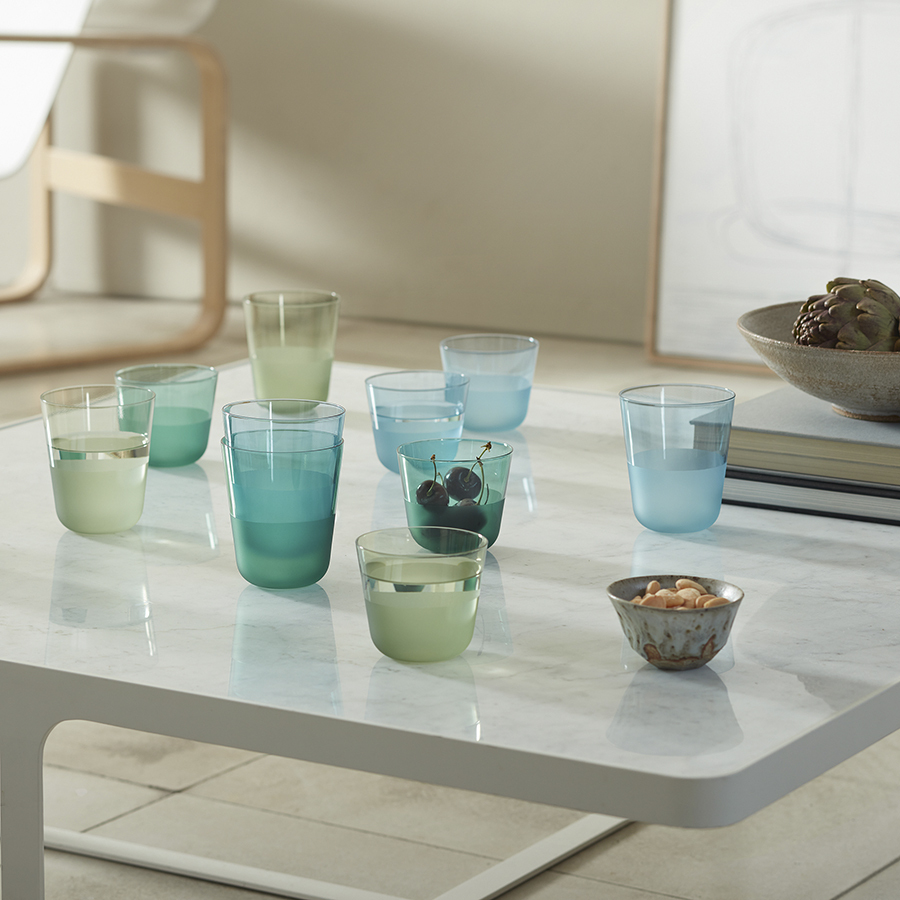 Arc Contrast – стильная коллекция стеклянной посуды в природных оттенках, отмеченная наградой Good Design Award в 2023 году. Стаканы имеют штабелируемую форму, ручное напыление и раскрашены органическими красками. Полупрозрачные и матовые акценты создают красивый контраст и игру света.