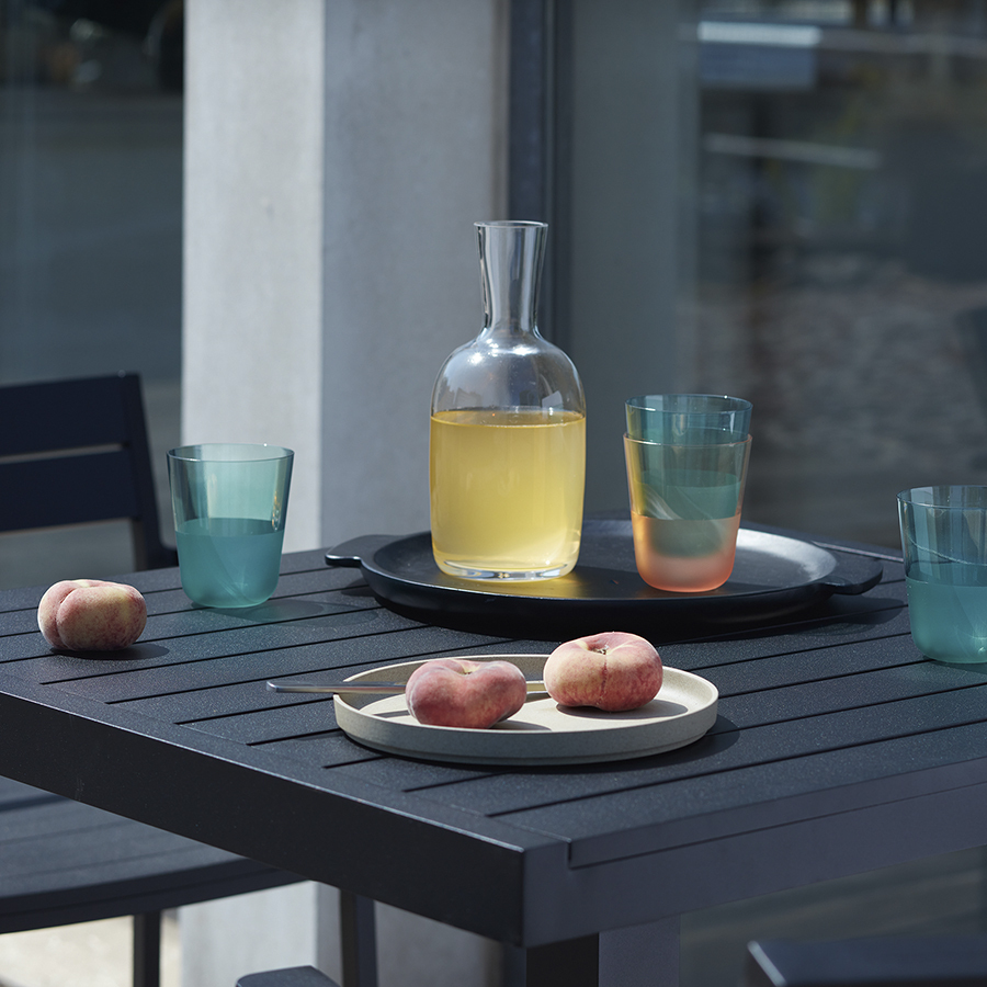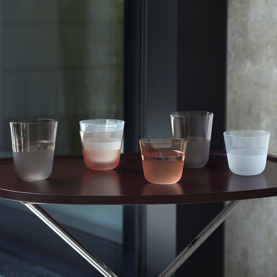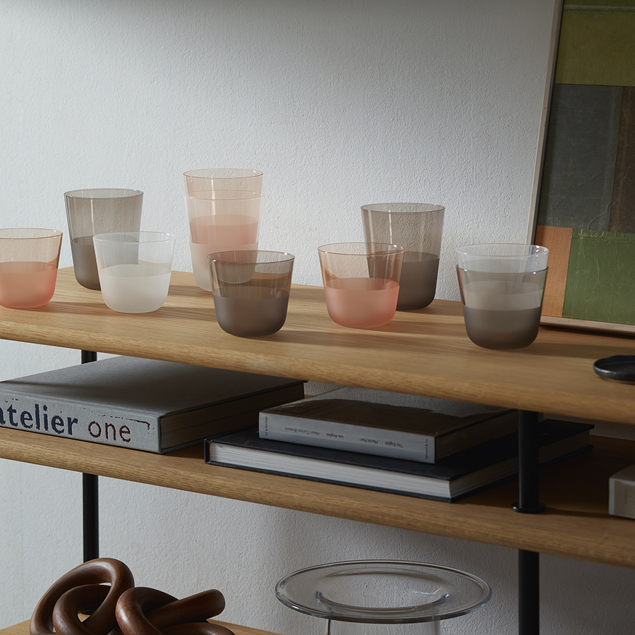 Arc Contrast – стильная коллекция стеклянной посуды в природных оттенках, отмеченная наградой Good Design Award в 2023 году. Стаканы имеют штабелируемую форму, ручное напыление и раскрашены органическими красками. Полупрозрачные и матовые акценты создают красивый контраст и игру света.