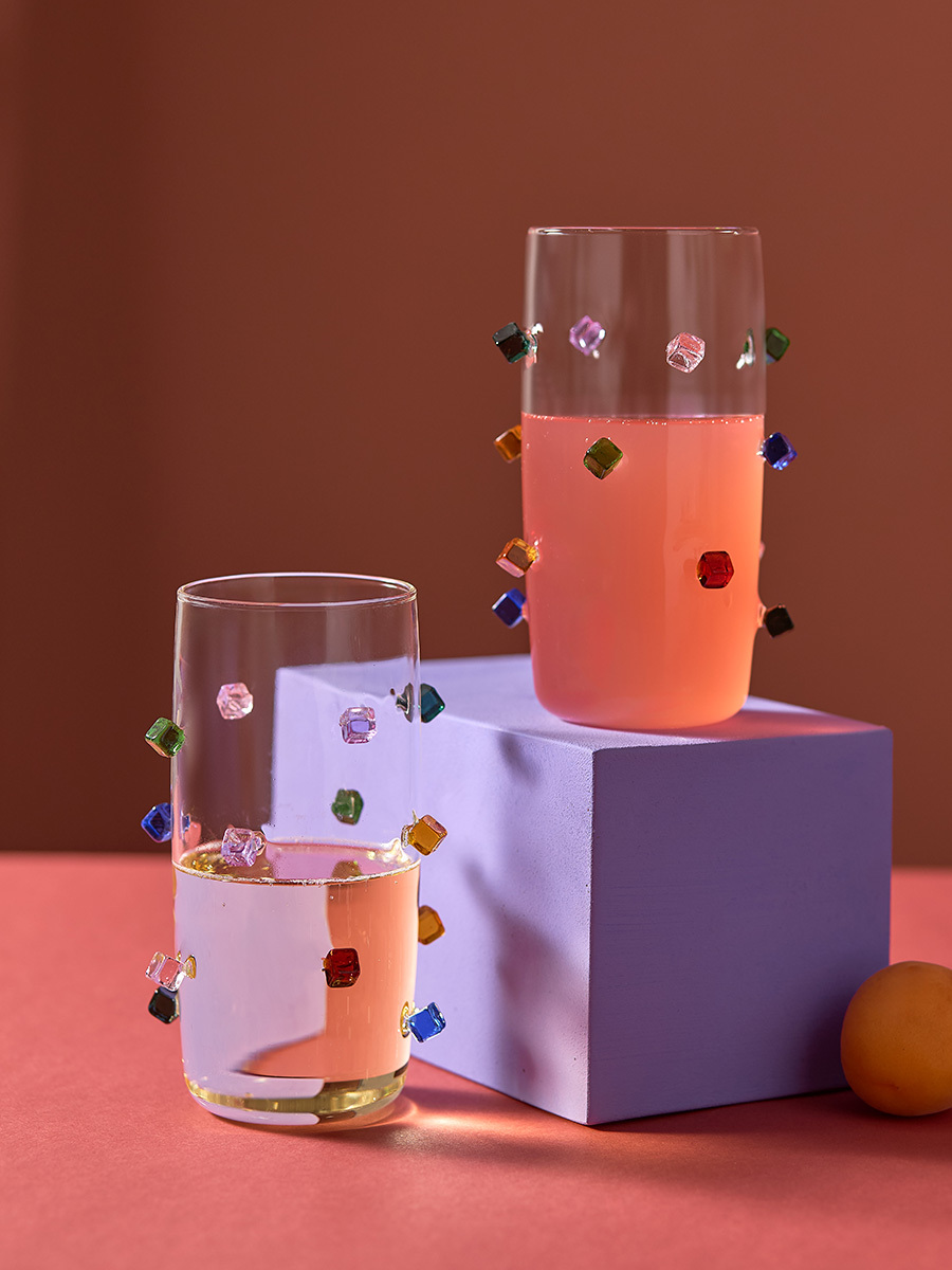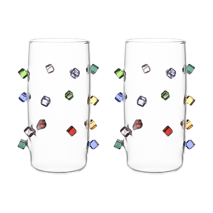 Набор стаканов Fiesta станет настоящей находкой для тех, кто любит необычные предметы сервировки. Такая посуда идеально подходит для подачи холодных напитков. Набор привлекает внимание интересным дизайном – стенки стаканов украшает объемный декор в виде разноцветных кубиков.