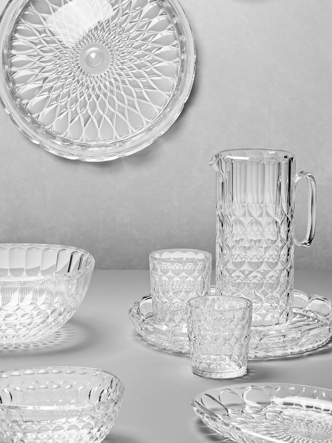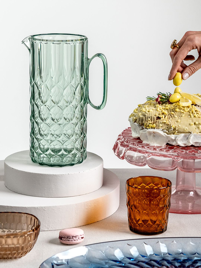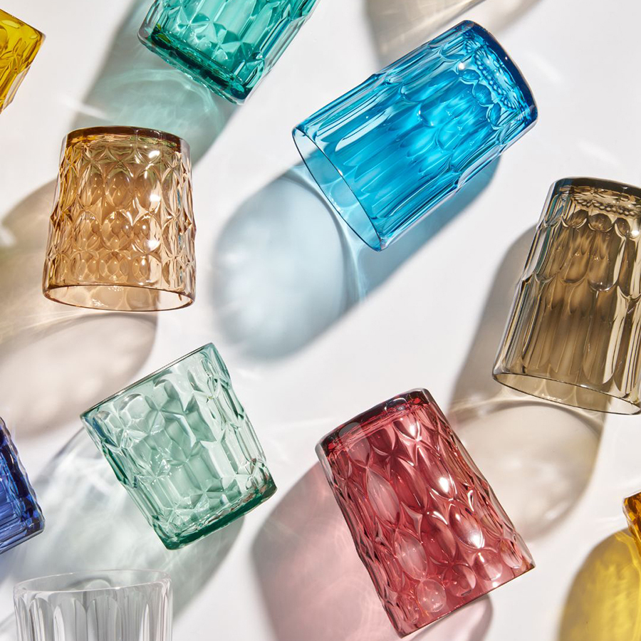 Набор из шести стаканов Vanity от итальянского бренда Guzzini – необычная посуда, в которой гармонично сочетаются привлекательный дизайн и практичность. Благодаря высокой устойчивости современного органического материала к внешним воздействиям, она идеально подходит для сервировки как в помещении, так и на свежем воздухе. Инновационное акриловое стекло на биооснове получают из растительных отходов. За счет особенной рельефной поверхности и ярких цветов предметы изящно переливаются на свету, что делает их еще более привлекательными.