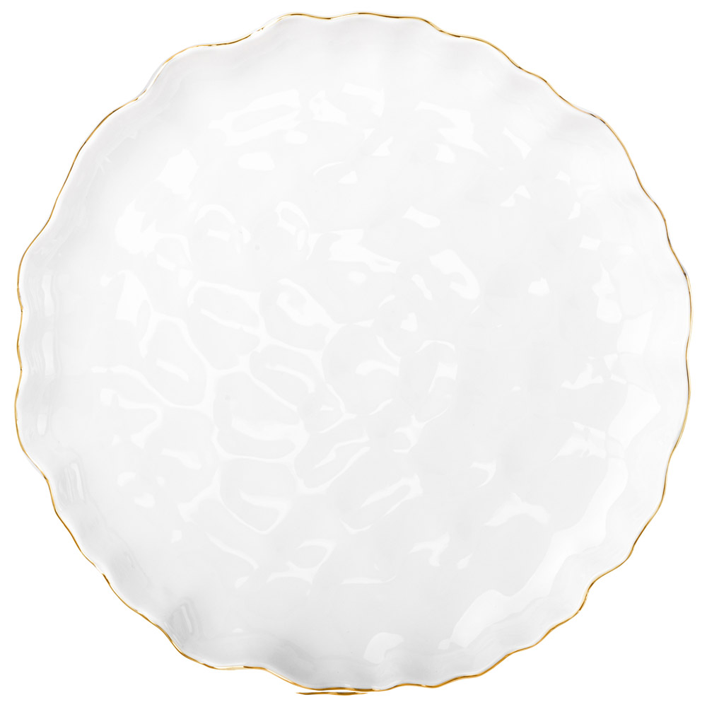 ТМ LEFARD "Charm" - добавьте нотку изысканности и утонченности в сервировку вашего стола с этой очаровательной коллекцией. Белоснежный "мятый" фарфор с волнистым краем и деликатной тонкой окантовкой - идеальный баланс между простотой и элегантностью. Глянцевая глазурь придает поверхности особый блеск, делая изделие приятным как для глаз, так и на ощупь, а тончайшая золотая окантовка, которая нанесена вручную, подчеркивает утонченность и добавляет праздничного шика. Коллекция подходит как для повседневного использования, так и для особых случаев. Не рекомендуется использовать в посудомоечной машине и микроволновой печи для сохранения целостности золотой окантовки. Вся посуда прошла сертификацию и безопасна для контакта с пищевыми продуктами.