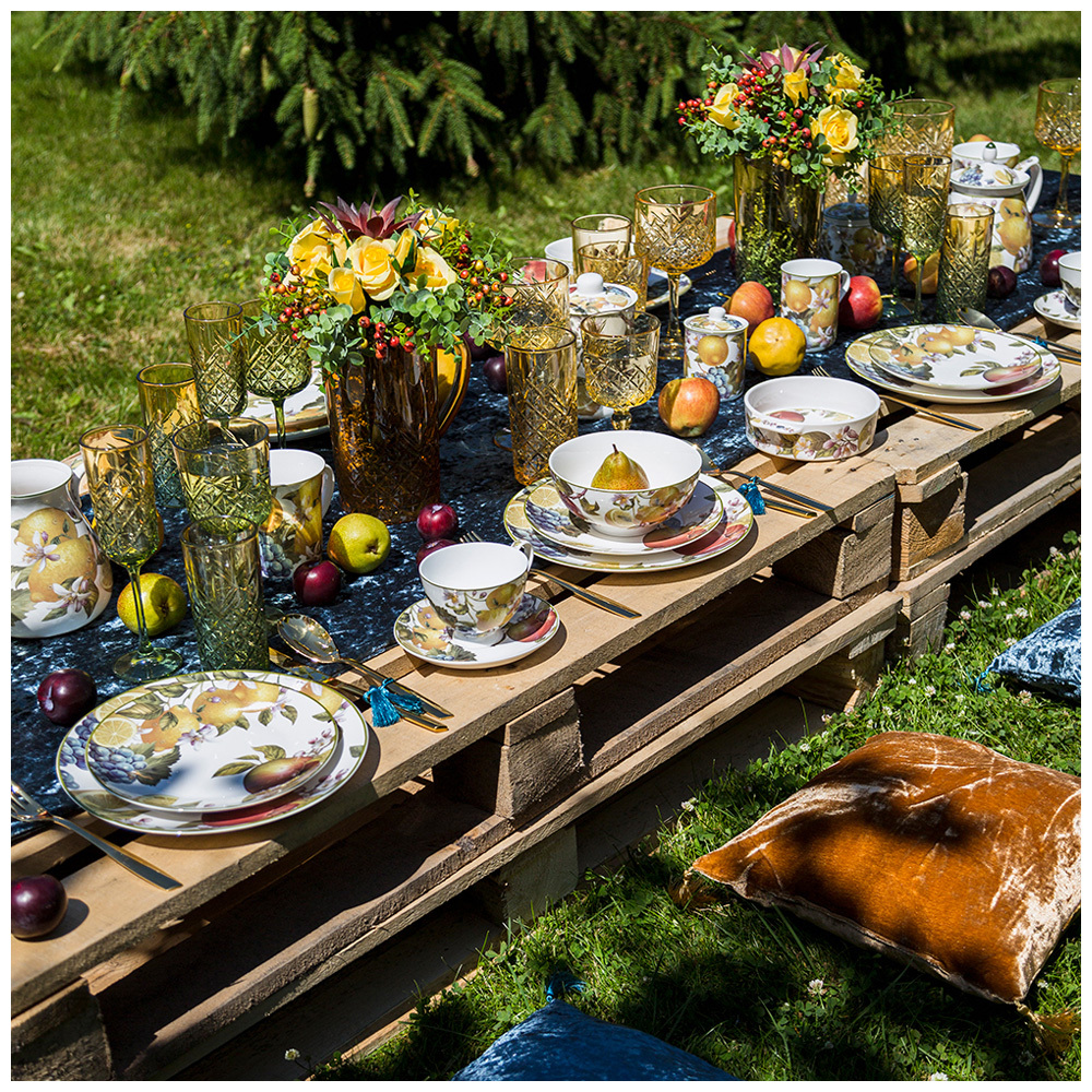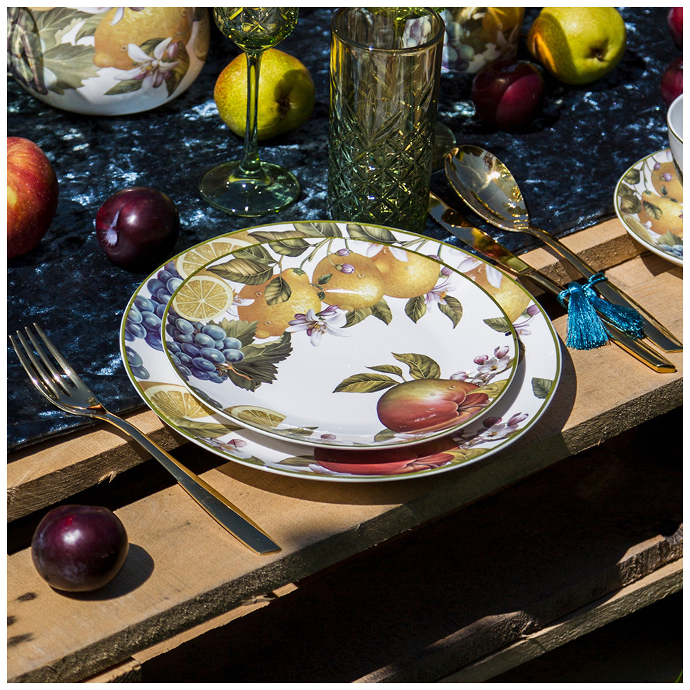 ТМ Lefard коллекция "Фрукты" - фруктовое ассорти на посуде и предметах сервировки сделает любую кухню уютной, а семейное чаепитие - душевным. Изделия из тонкостенного, высококачественного и костяного фарфора. Удобная форма, красочный дизайн, яркая упаковка. Изделия подходят для ежедневного использования и праздничной сервировки стола. Отличный подарок. Посуда прошла сертификацию. Безопасна для контакта с пищевыми продуктами. Можно смело использовать в микроволновой печи, мыть в посудомоечной машине, ставить в холодильник.
