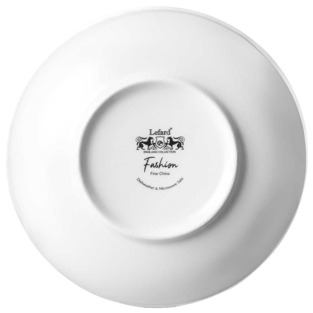 ТМ LEFARD "FASHION - СТИЛЬНАЯ" - белоснежная посуда современной формы с высоким краем, базовая для стильной и креативной сервировки. Коллекция выпонена из фарфора Fine China, более простого и дешёвого нового материала, где в составе имеется искусственный минерал, который улучшает характеристики фарфора, делая его прочнее, тоньше и легче. Себестоимость получается ниже, а по прочности и внешнему виду он зарекомендовал себя с лучшей стороны и завоевал доверие покупателей. Удобные формы и размеры. Прекрасно сочетается с любой декорированной посудой. Хороша для ежедневного использования. Ваш стол неотразим! Можно мыть в посудомоечной машине, использовать в микроволновой печи.