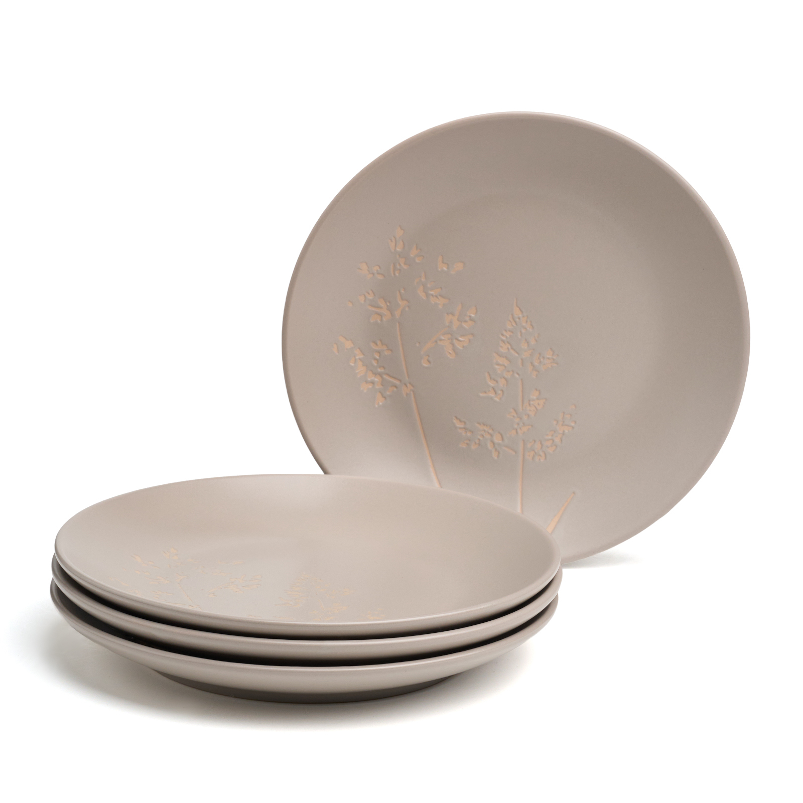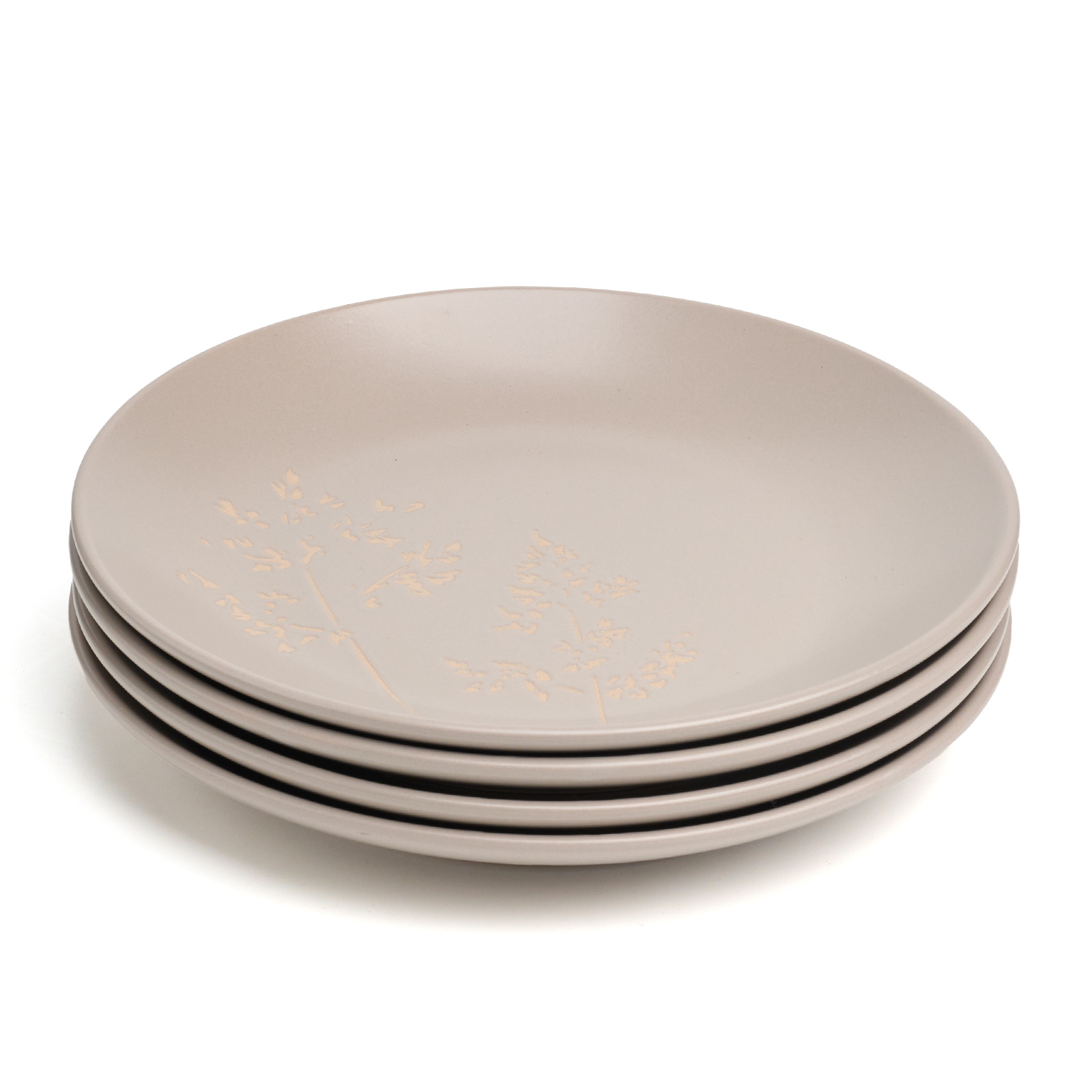Благодаря сочетанию однотонного фона с красивыми рельефными акцентами в виде трав и цветов, эта посуда удачно впишется в любой интерьер.