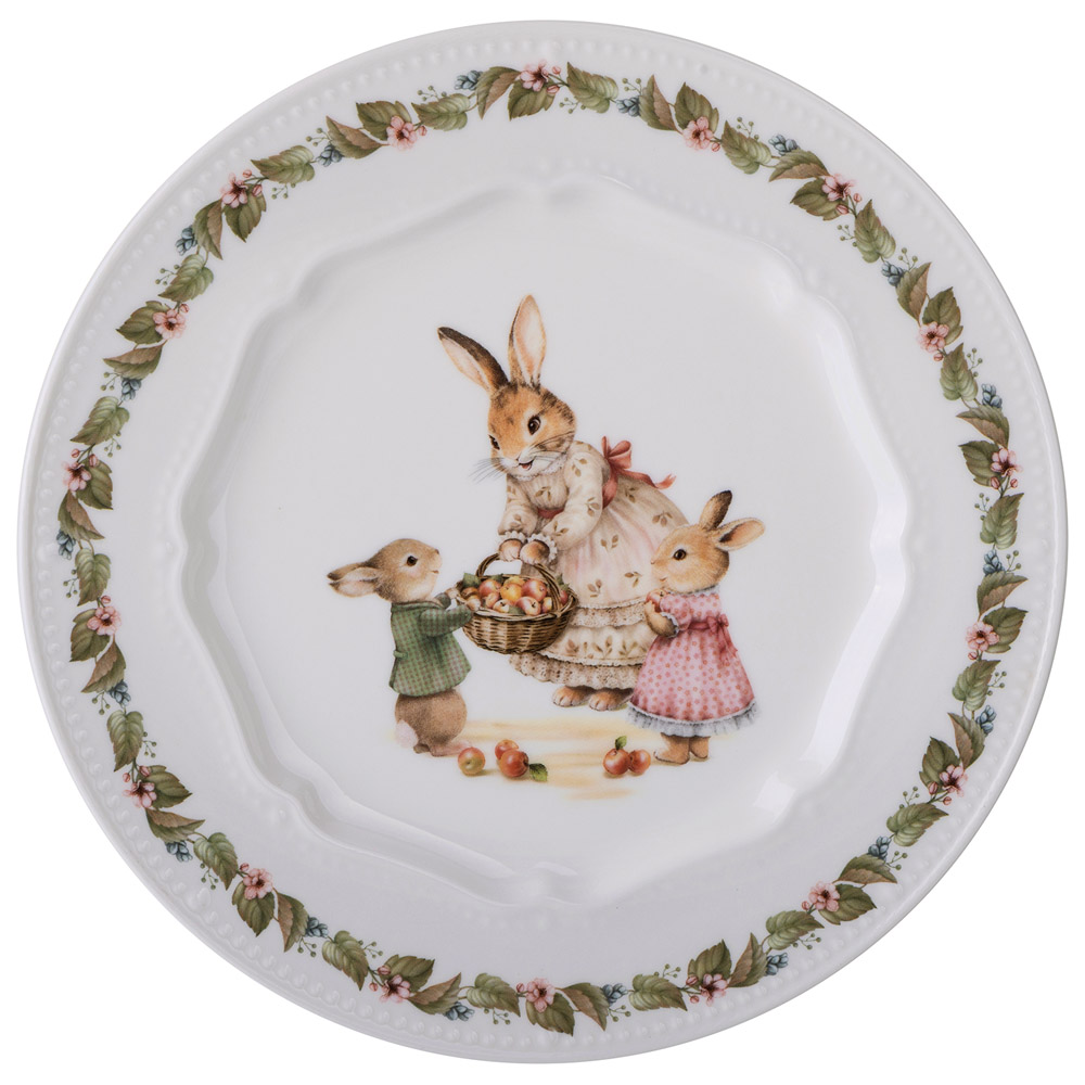 TM LEFARD эксклюзивная серия «Rabbits Family» - это очаровательный мир, где каждое изделие рассказывает добрую историю о дружном семействе кроликов. Сюжеты наполнены глубоким смыслом и учат доброте, они нравятся и взрослым, и детям. Упрочненный фарфор, оригинальный рельефный край изделий с лёгким лиственным декором, мягкая палитра цветов. Все это создает тепло и уют в доме, превращая сервировку стола в маленькое семейное приключение. Коллекция включает наборы обеденных и закусочных тарелок, салатники, кружки, кувшин, чайные пары и наборы из них. Посуда хороша для ежедневного использования. Легко накрыть веселый завтрак, плотный обед и семейный ужин. Прекрасный подарок родным и близким в красочной фирменной упаковке. Вся продукция сертифицирована и безопасна для контакта с пищевыми продуктами. Легка в уходе, не боится мытья в посудомоечной машине, использования в микроволновой печи.