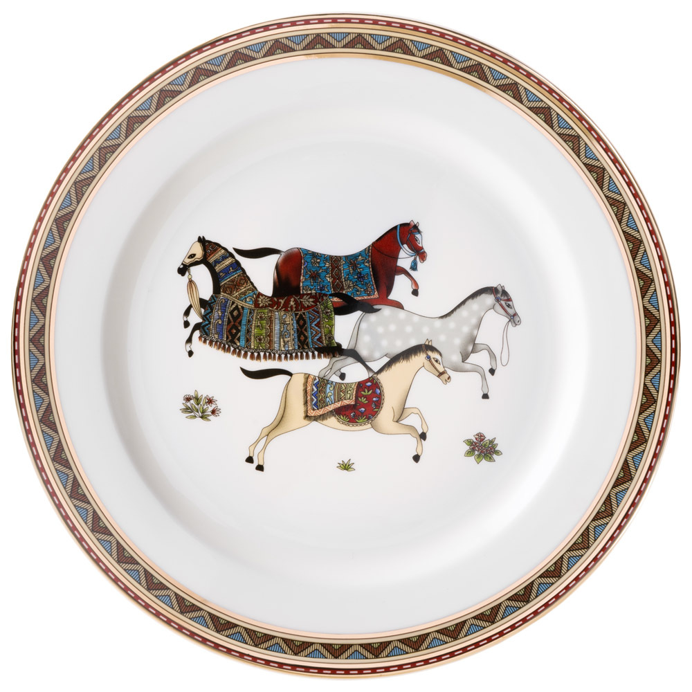 ТМ Lefard коллекция Passage мужественная и стильная. Движения лошадей эластичные, элегантные с активным импульсом. Каждая диагональная пара ног поднимается и ставится в очень точном ритме и с подвисанием. Шея лошади приподнята и округлена, затылок находится в высшей точке, голова опущена почти вертикально. Этот ритм завораживает. Посуда для сервировки стола из тонкостенного упрочненного фарфора неповторима. Прямые формы. Декор с богатым орнаментом и золотой окантовкой. Посуда прошла сертификацию. Безопасна для контакта с пищевыми продуктами. Отличный подарок. Не использовать в микроволновой печи, не рекомендуется мыть в посудомоечной машине.