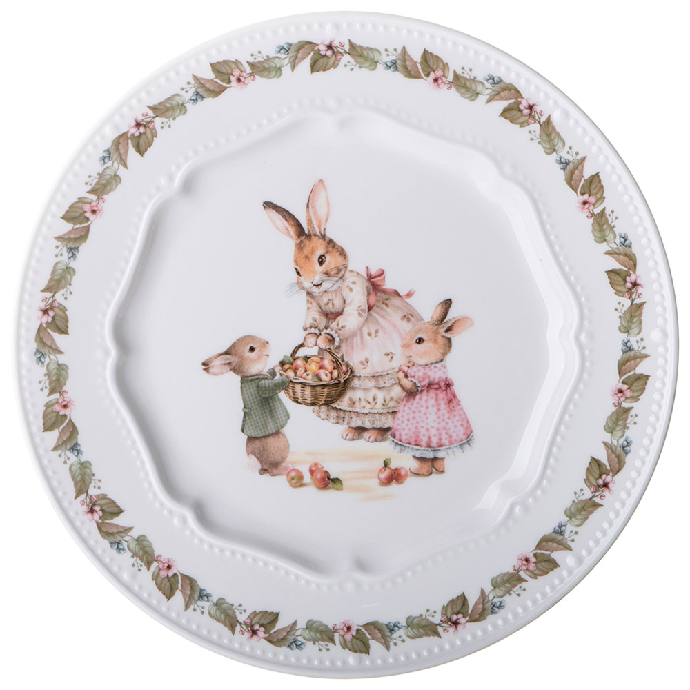 TM LEFARD эксклюзивная серия «Rabbits Family» - это очаровательный мир, где каждое изделие рассказывает добрую историю о дружном семействе кроликов. Сюжеты наполнены глубоким смыслом и учат доброте, они нравятся и взрослым, и детям. Упрочненный фарфор, оригинальный рельефный край изделий с лёгким лиственным декором, мягкая палитра цветов. Все это создает тепло и уют в доме, превращая сервировку стола в маленькое семейное приключение. Коллекция включает наборы обеденных и закусочных тарелок, салатники, кружки, кувшин, чайные пары и наборы из них. Посуда хороша для ежедневного использования. Легко накрыть веселый завтрак, плотный обед и семейный ужин. Прекрасный подарок родным и близким в красочной фирменной упаковке. Вся продукция сертифицирована и безопасна для контакта с пищевыми продуктами. Легка в уходе, не боится мытья в посудомоечной машине, использования в микроволновой печи.