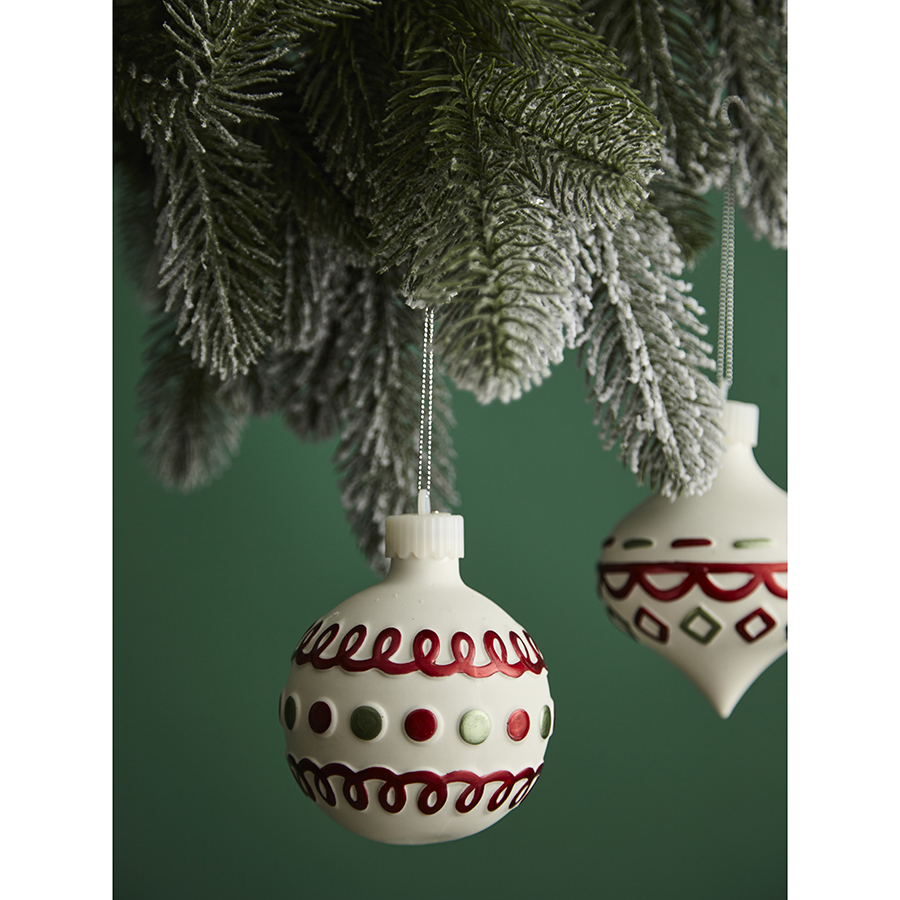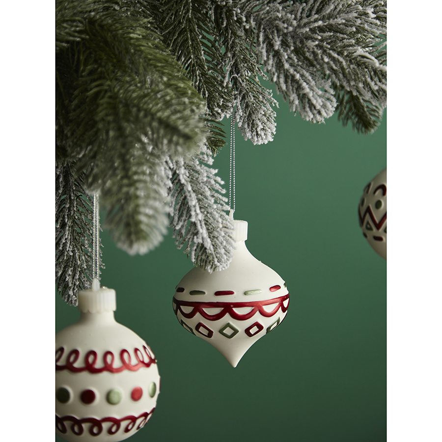 С набором украшений Festive Embroidery из коллекции New Year Essential ваша ёлка превратится в настоящее произведение искусства. Эти игрушки из фарфора эффектно выделяются на фоне других не только благодаря изящному дизайну, но и за счет наличия подсветки. Они, словно волшебные артефакты, наполняют пространство ощущением радости в ожидании новогодних чудес.