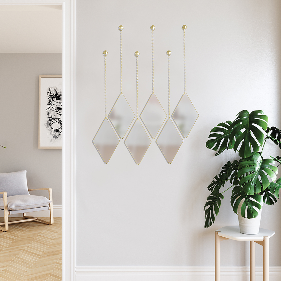 Набор из трех оправленных в металл зеркал - стильное украшение интерьера. Такие зеркала выглядят как драгоценные камни на подвесках.