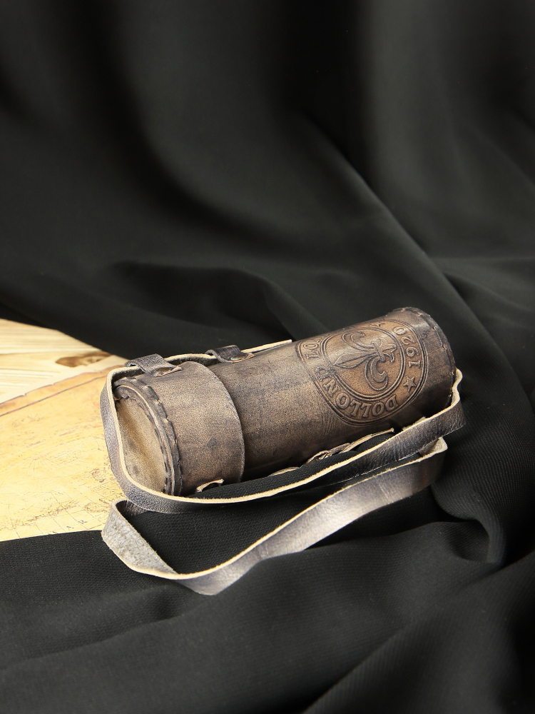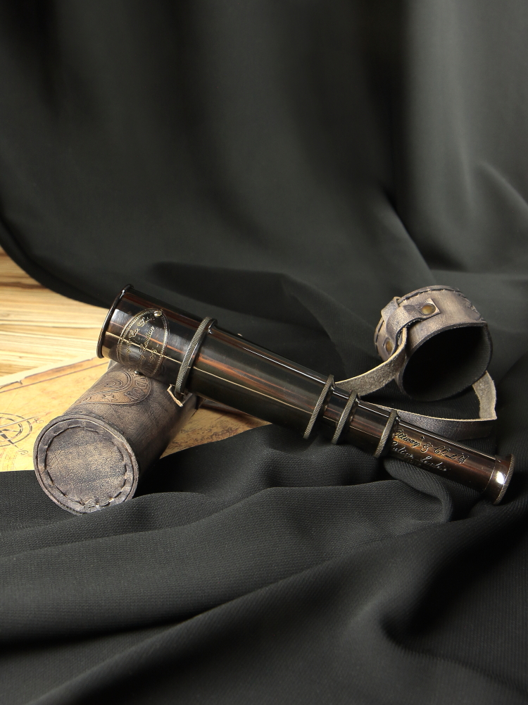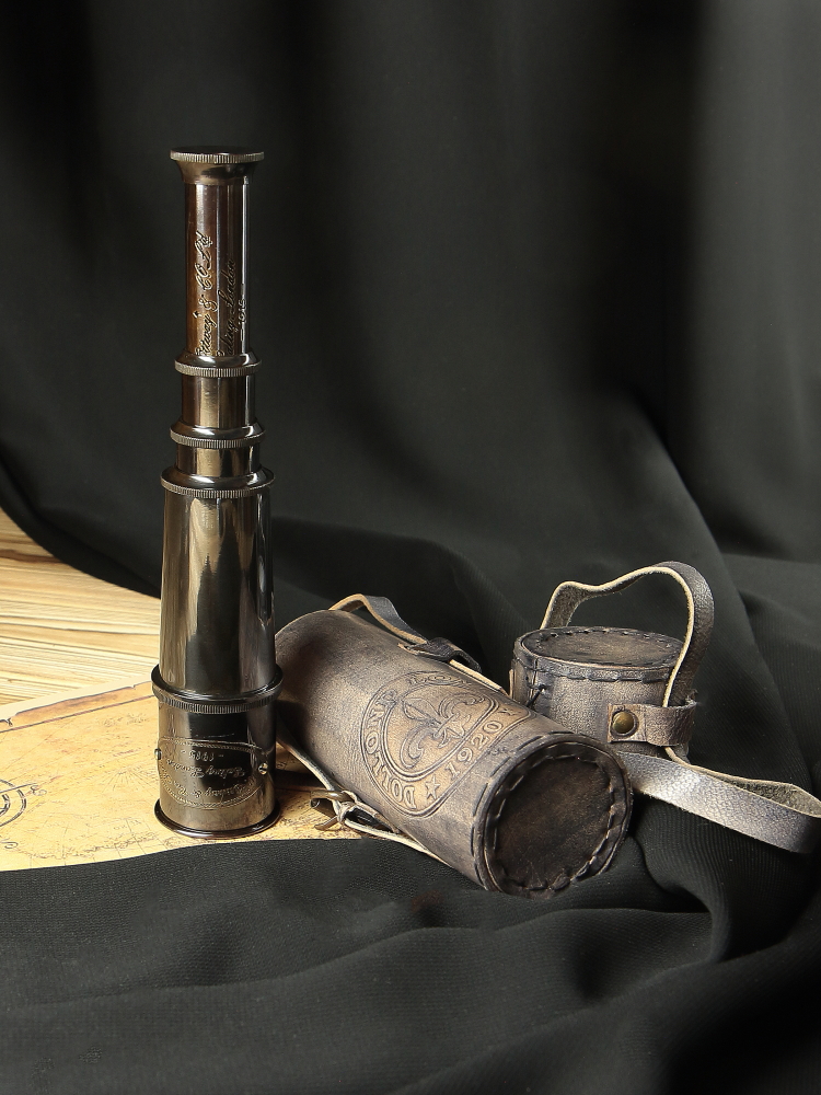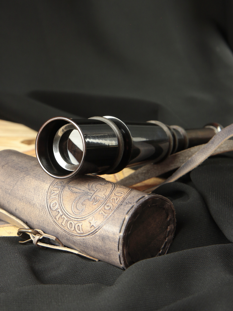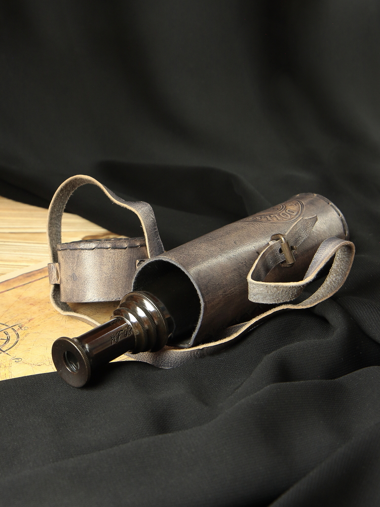 Подзорная труба с кожаным покрытием в кожаном футляре