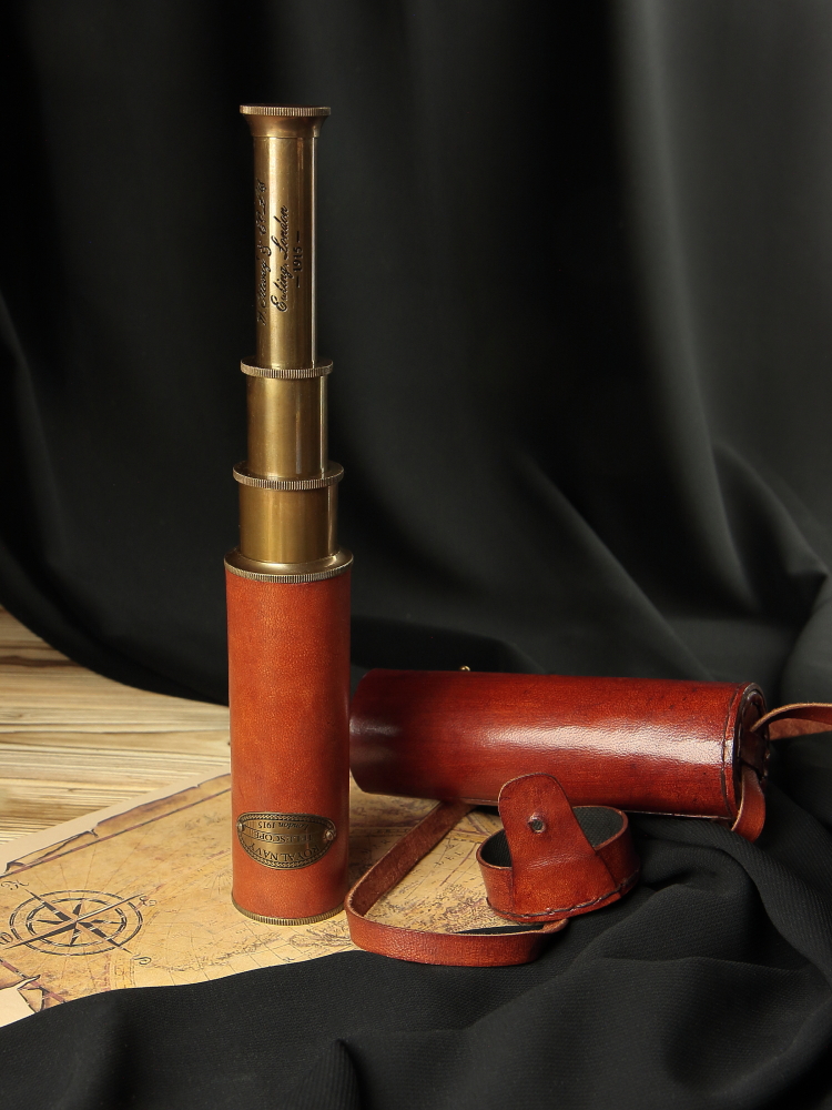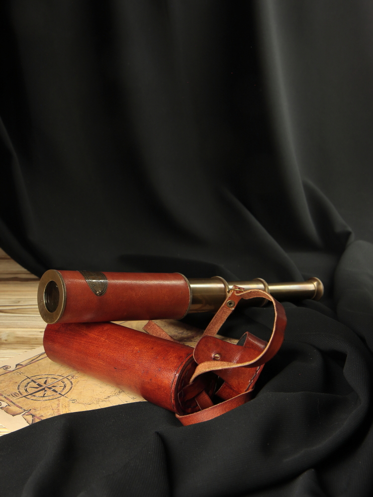 Подзорная труба с кожаным покрытием в кожаном футляре