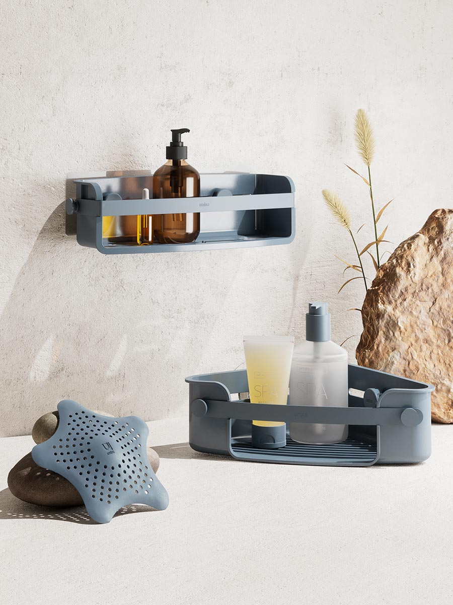 Угловой органайзер для душа Flex Adhesive Bin поможет создать и сохранить идеальный порядок в ванной или душевой кабине. Его продуманная эргономичная конструкция вмещает все необходимое: от уходовой косметики и шампуней до бритвы и мочалок.
