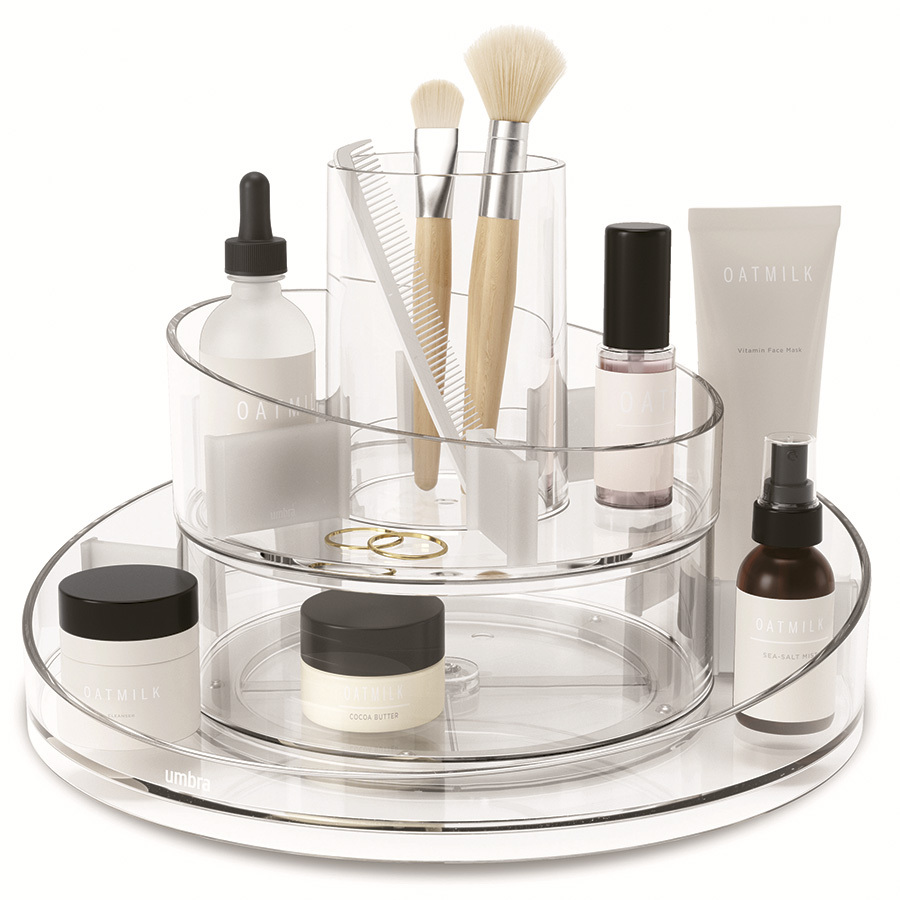 Многоуровневый органайзер поможет организовать хранение косметики и аксессуаров.