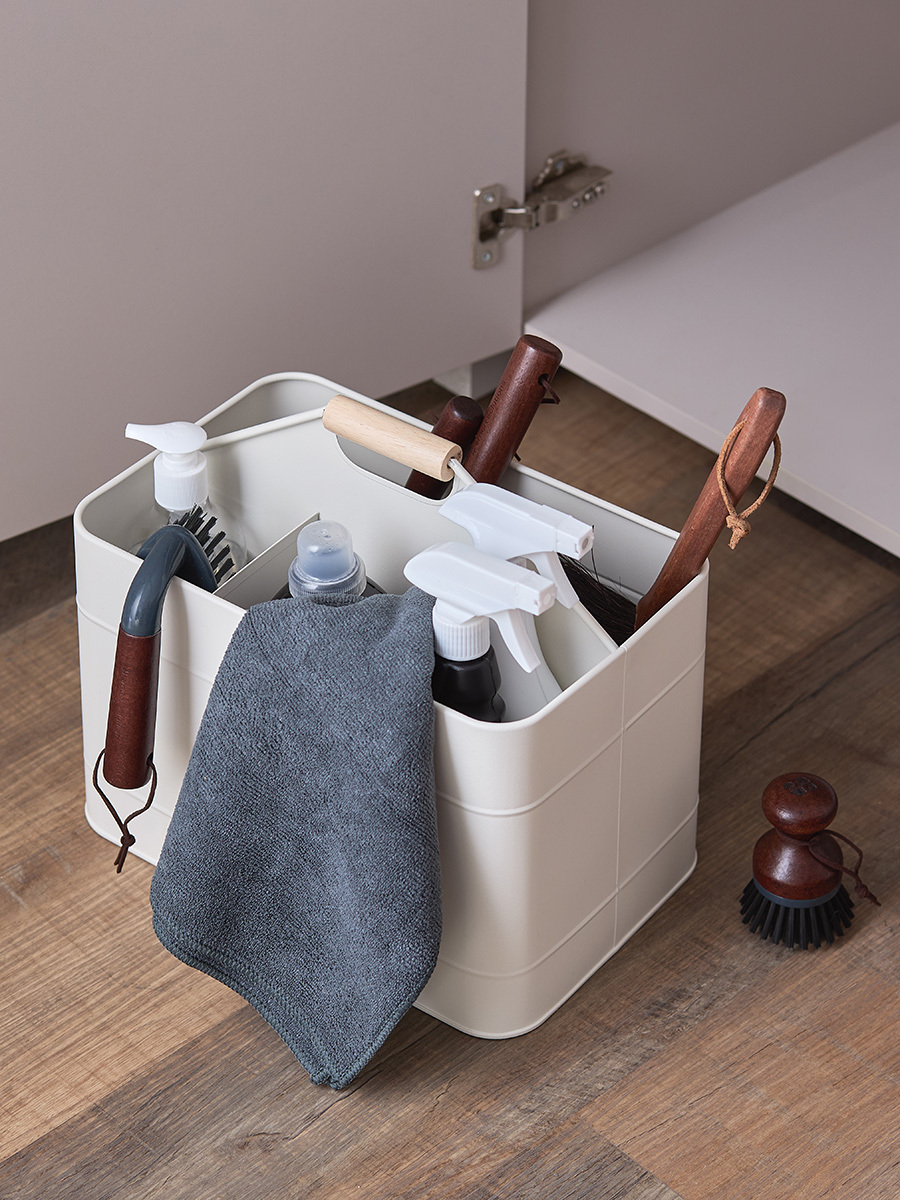 - Органайзер имеет 4 отделения для удобного хранения различных моющих средств.