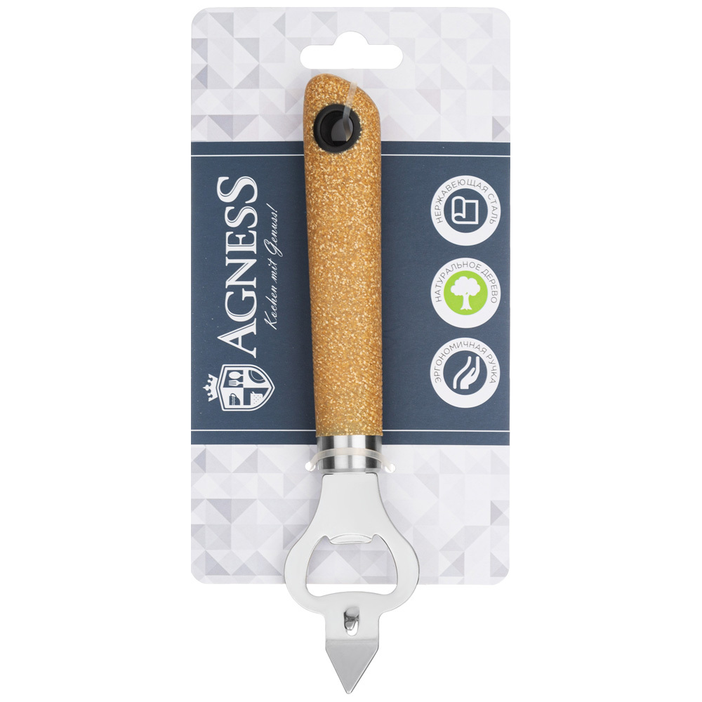 ОТКРЫВАЛКА ДЛЯ БУТЫЛОК AGNESS "NATURE" - кухонное приспособление, предназначенное для удобного снятия металлических пробок с бутылок. Данный инструмент занимает минимум места и отличается удобством в использовании, выполнена из качественных материалов, поэтому прослужит долгое время.