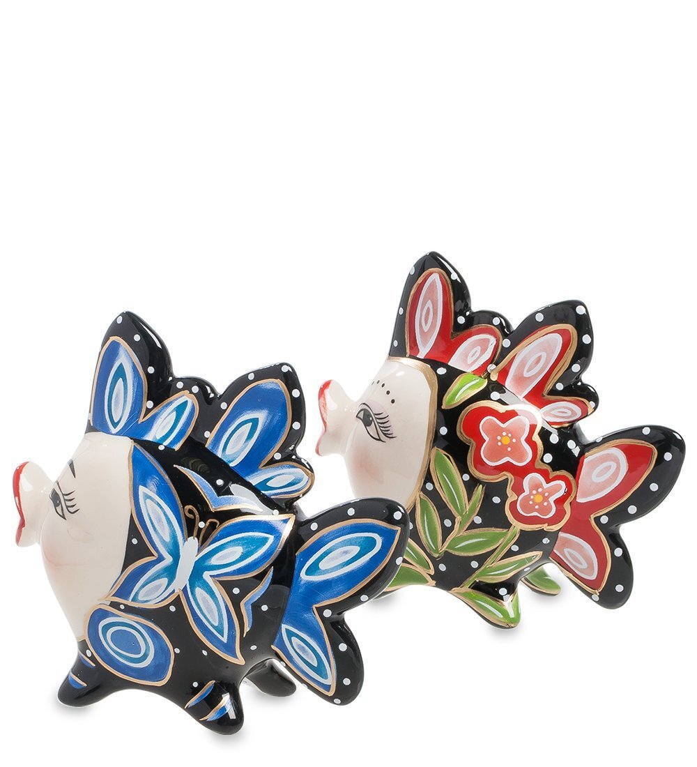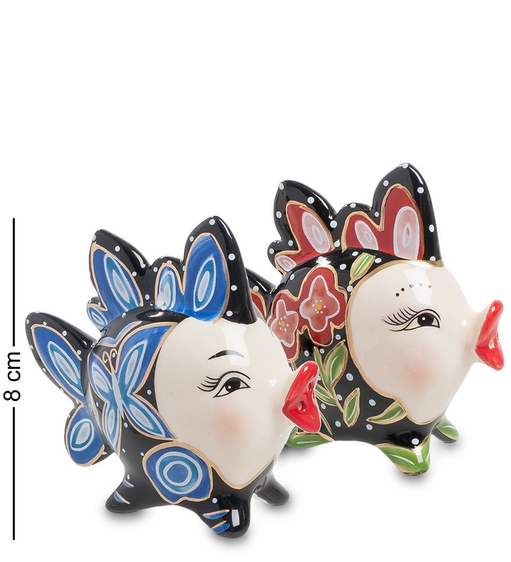 По вашему обеденному столу будет плавать два похожие рыбки. Обе черные, как ночь, с белыми лицами и совсем человеческими глазами. Только одна раскрашена стилизованными голубыми с белым цветами, а вторая – цветами красно-белыми на стеблях с зелеными листиками. Обе рыбки удивленно разинули свои маленькие ротики и смотрят по сторонам. Это не просто безделушки, на стол их поставили по причине вполне серьезной. В рыбках хранятся приправы – соль с перцем, и служат они в качестве солонки и перечницы. За время обеда ими, скорее всего, воспользуются все присутствующие, подгоняя вкус блюд под свои предпочтения. А заодно и полюбуются на красивые фигурки.