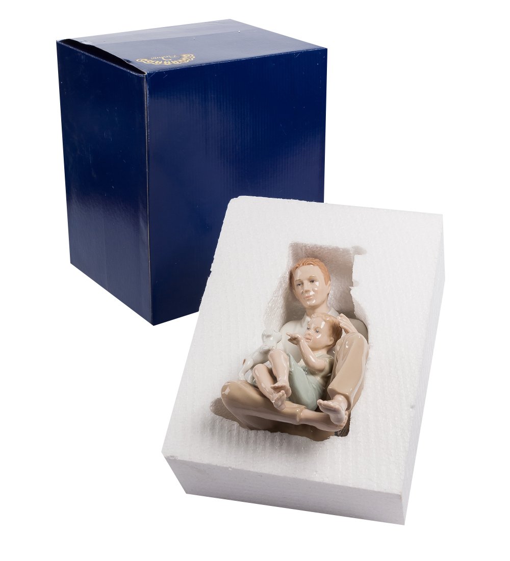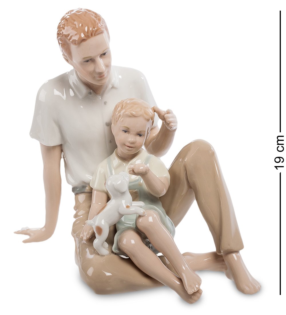 Маленький мальчик со своим папой сидят на полу и мирно беседуют. У двух мужчин всегда найдется, о чем поговорить, несмотря на разницу в возрасте и в жизненном опыте. Важно, что тема интересна для обоих, и беседой они явно увлечены. Малыш продолжает по привычке играть со щенком, не оставившим его без своего внимания, но думает явно о другом: с папой намного интереснее! С годами мужских тем станет больше, они будут еще интереснее, младший многому научится от старшего, и ему это в жизни очень пригодится. А эта фарфоровая статуэтка будет всегда напоминать им о начале жизненного пути и о начале крепкой мужской дружбы.
