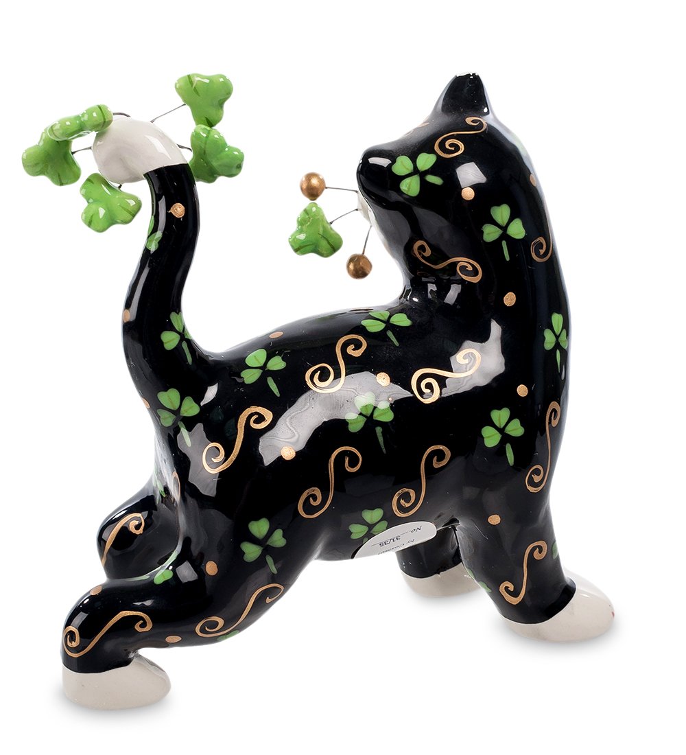 Этот кот имеет совершенно невероятную раскраску. И не только потому, что при черной шерстке у него белая грудка и кончики лап и хвоста. Такие коты бывают. А вот коты в оранжевую точечку и в зеленый цветочек – это что-то нереальное. И кот этот явно чрезвычайно доволен своим видом, недаром аж зажмурился от удовольствия. У него даже на усах зеленые листики, а на кончике хвоста – целый пучок этих листиков, напоминающий пропеллер, как у вертолета. Настоящий модник всегда испытывает настоящее удовольствие от собственного внешнего вида, если вид этот – по последнему писку моды. Хоть и кошачьей.