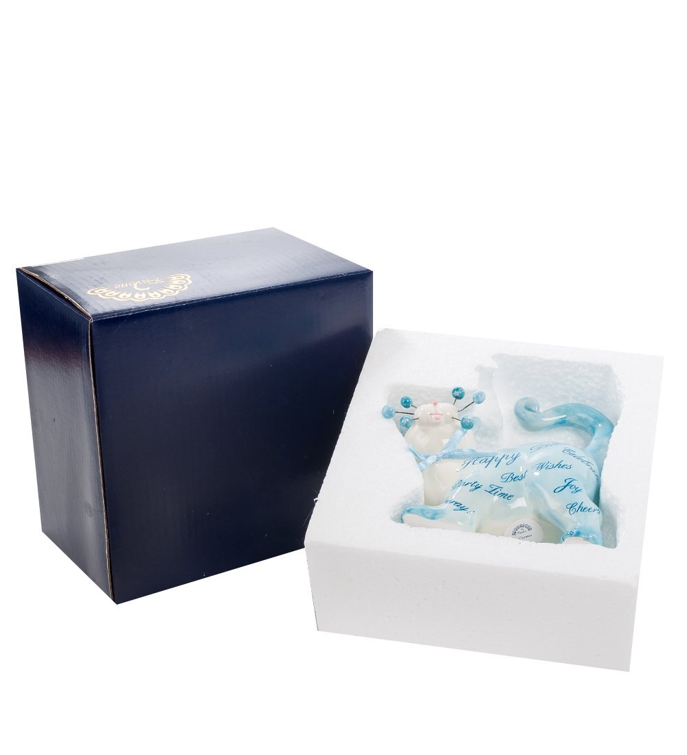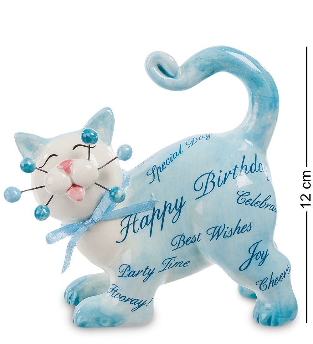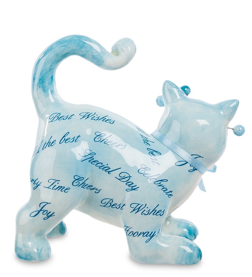 Этот кот по сути своей – объемная поздравительная открытка, которую можно вручить ко дню рождения. По его голубого цвета шкуре – сплошные надписи, поздравления и пожелания. Но места на ней еще достаточно, чтобы приписать и свои поздравления – короткие, но от всей души. Можно прямо за праздничным столом передать его по рукам гостей вместе с фломастером и предложением добавить по паре слов. В отличие от открытки, которую прячут в стол и забывают, кота поставят на видном месте, он будет комнату украшать и при этом напоминать о недавнем торжестве и о тех, кто с ним поздравил. Да и сам кот, дико размахивая своим диким хвостом, присоединится к поздравлениям!