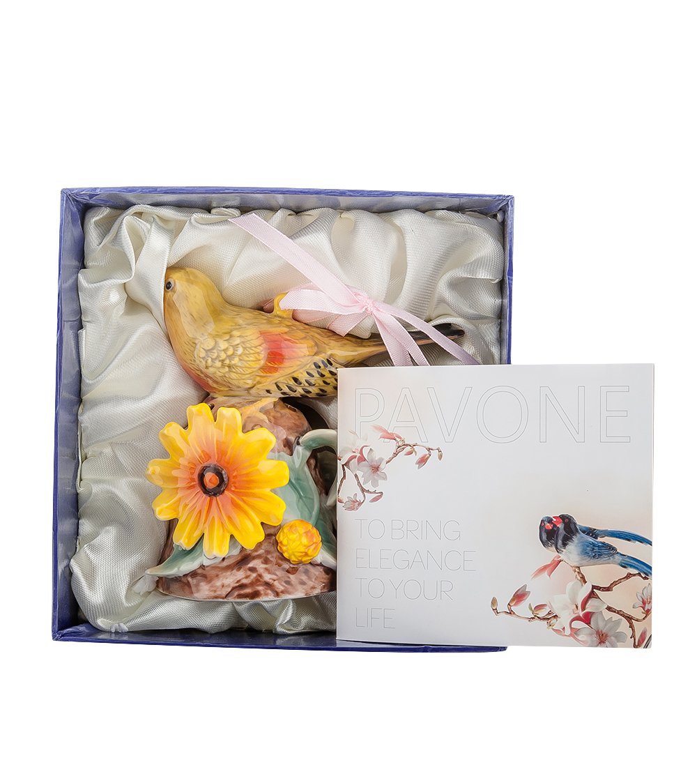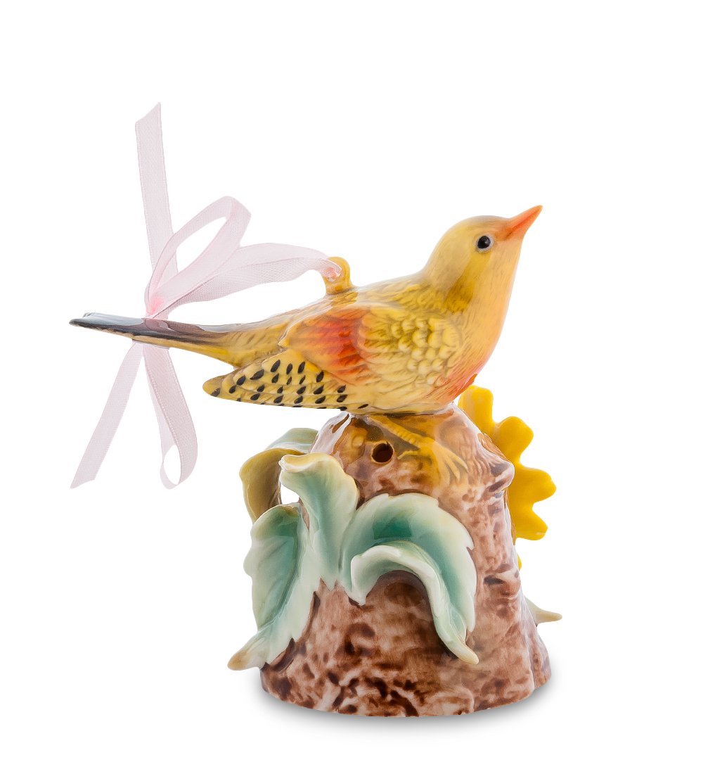Уникальная и современная музыкальная фигурка «Малиновка» поражает ярко-желтыми оттенками в дизайне. Преобладающий солнечный цвет настолько красиво сочетается с остальными цветами, что фигура выглядит, как настоящая. Ее можно использовать в качестве статуэтки либо подвешивать за ленточку.