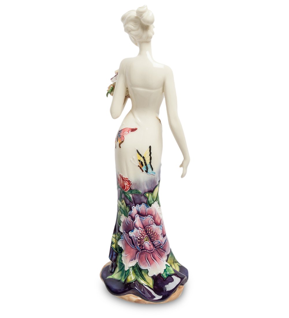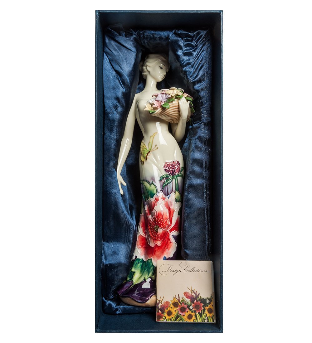 Фарфоровая нежность и очарование — именно такие ассоциации вызывает фигурка «Девушка». Великолепная статуэтка красивой женщины точно подчеркивается прекрасным платьем с яркими цветами. Образ настолько милый и романтичный, женственный и красивый, что этой фарфоровой девушкой можно любоваться часами. Мастер создал совершенную фигуру – грациозную, утонченную девушку, в которой чудесным образом сочетается отсутствие макияжа и естественная красота.