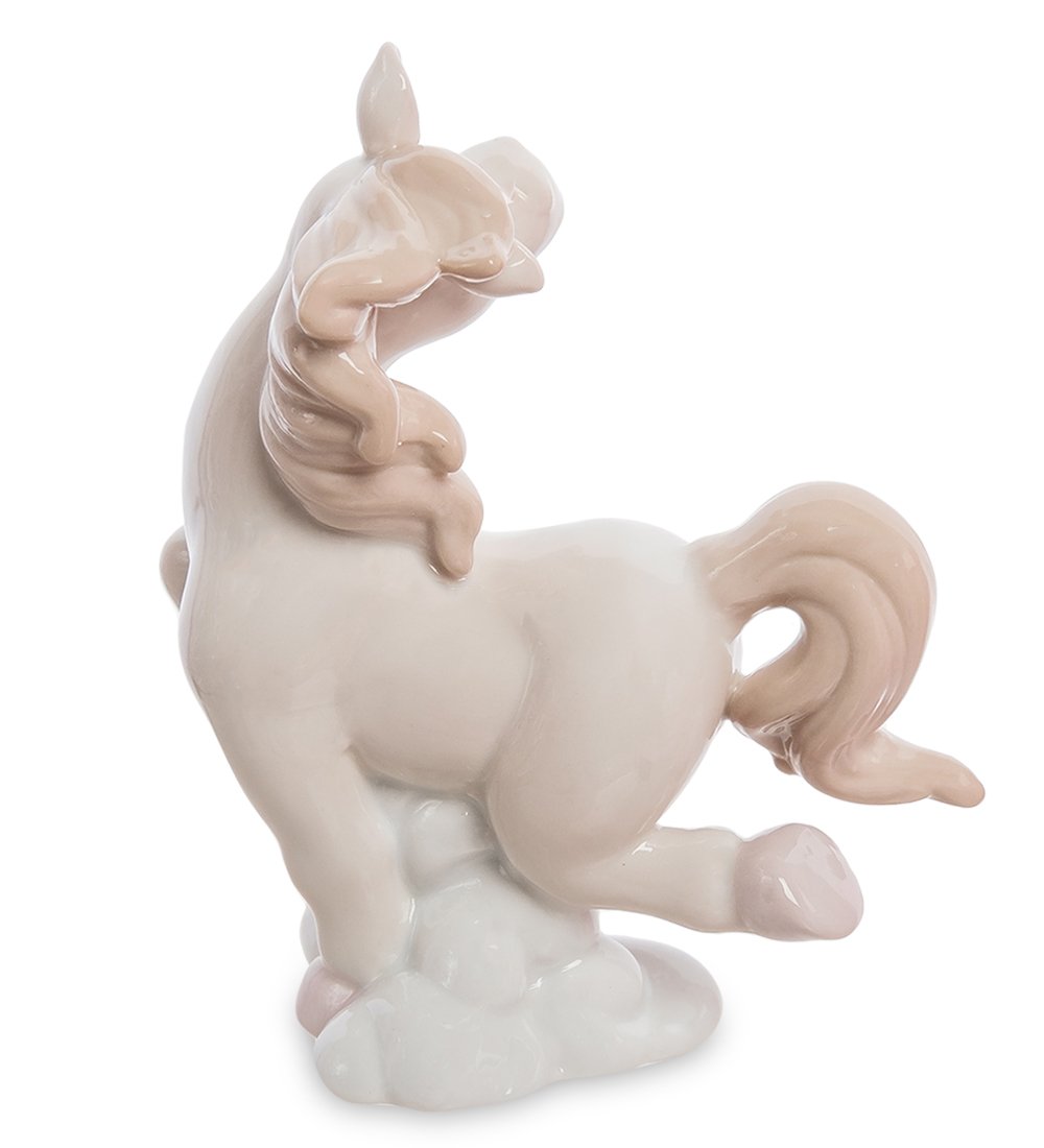 Лошадь расположилась на подставке, выполненной в виде небольшого белого облачка. Она очень красива и живет в небесах, а также в детских мечтах своих поклонниц. У Миловидки пышные каштановые грива и хвост, развивающиеся на ветру. Копыта лошади, губы и ноздри художники выделили бледно-розовой краской – краской детских грез. Небольшая лошадка (высота статуэтки – 11 сантиметров) горделиво запрокинула голову и подняла вверх левое переднее копытце. Возможно, ей предстоит сыграть одну из главных ролей в детском мультсериале, или сняться для журнала?