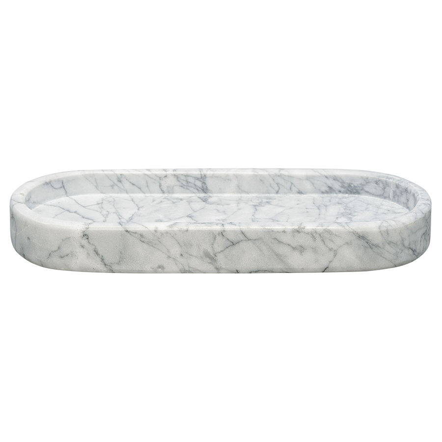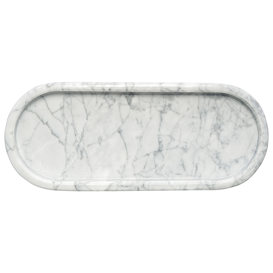 Помимо внешней привлекательности, мраморный поднос отличается высокими прочностными характеристиками и долговечностью. Изделие сохраняет первозданный вид на протяжении долгих лет, не требуя специального ухода. Он может использоваться в качестве оригинальной подставки для украшений, благовоний, свечей, парфюма, косметики и различных аксессуаров в любой из комнат. Дизайн актуален для большинства популярных интерьерных стилей: минимализм, арт-деко, неоклассика, сканди, фьюжн и других.