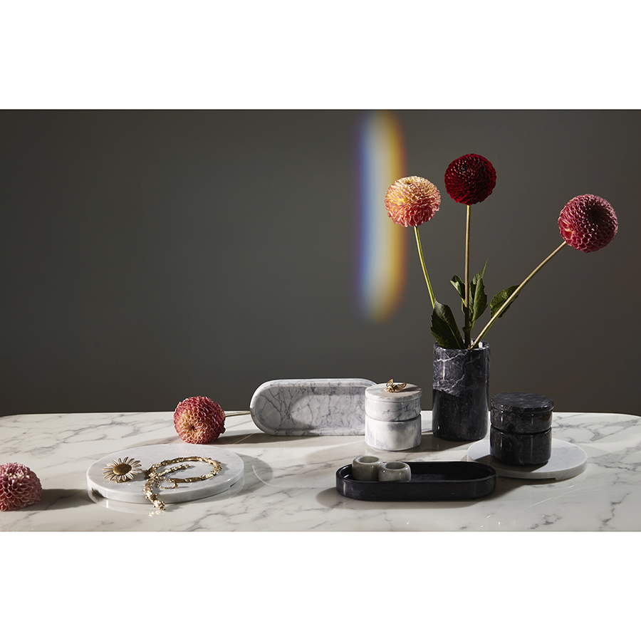 Коллекция Marm сочетает в себе естественную красоту природных материалов и утонченность классического дизайна. Аксессуары из мрамора привносят в оформление интерьера нотки элегантности, подчеркивая безупречный вкус хозяев дома. Уникальные узоры и оттенки натурального камня делают каждый предмет неповторимым.