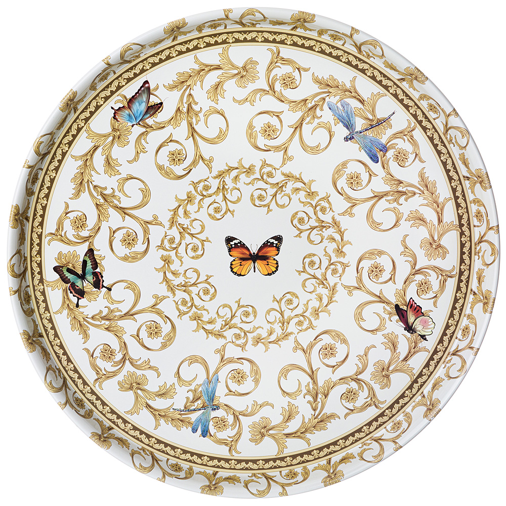 Поднос имеет оптимальную круглую форму диаметром 33 см и удобные для переноса содержимого приподнятые стенки высотой 2,1 см.