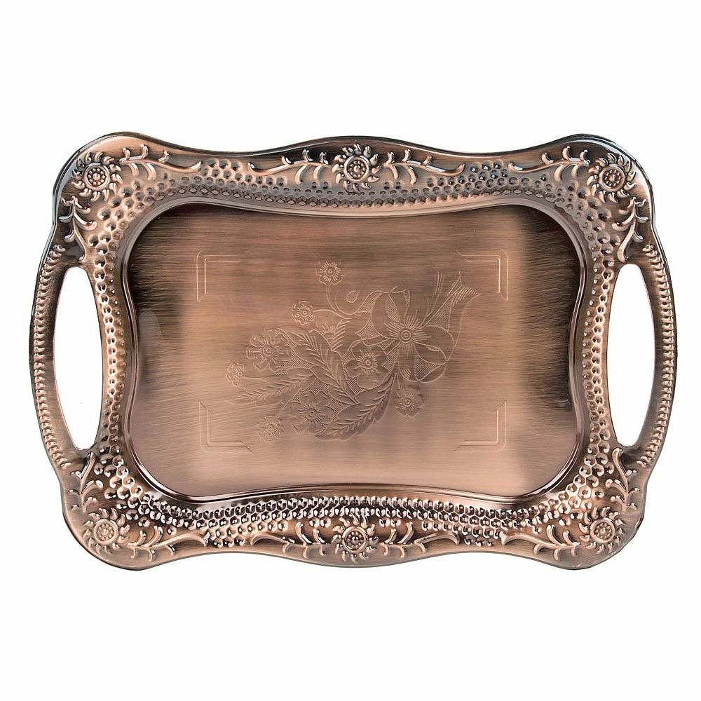 Поднос сервировочный (медь) 36*25*2,5см. (металл с гальваническим покрытием) (упаковочный пакет)
