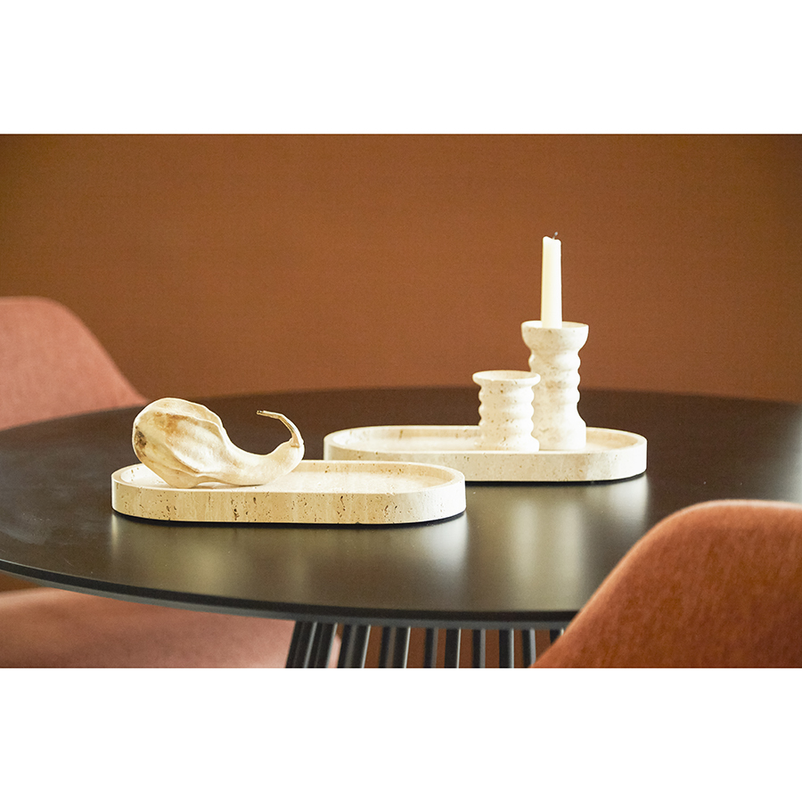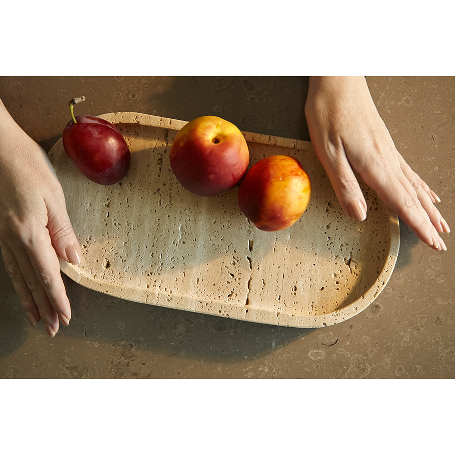 Поднос Travertin – роскошное дополнение как для традиционного, так и для современного интерьера, способное придать пространству благородный вид и индивидуальный стиль. За счет шлифовки и полировки поверхность имеет схожесть со структурой дерева или натурального камня, сохраняет эстетичный внешний вид, обладает высокой прочностью и долговечностью. Изделие можно использовать в качестве изысканной подставки для украшений и различных аксессуаров.