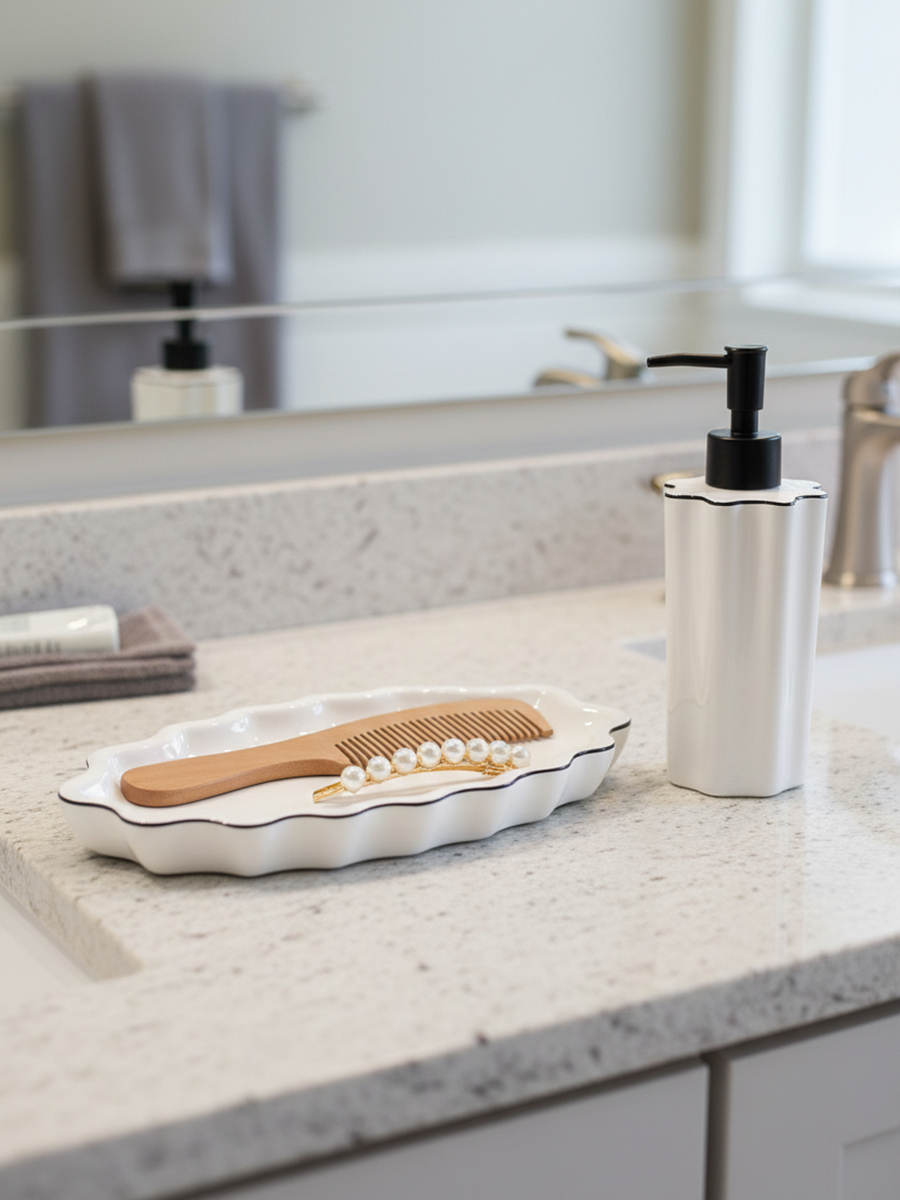- Аксессуар изготовлен из каменной керамики, которая не впитывает загрязнения, устойчива к царапинам и не требовательна в уходе.