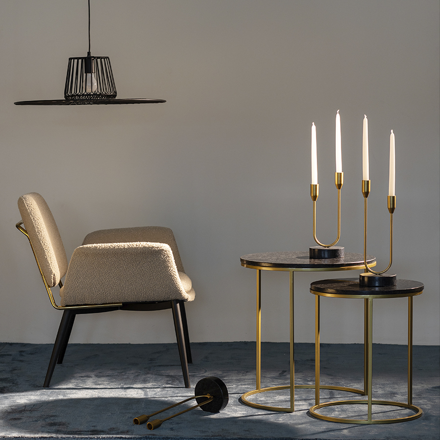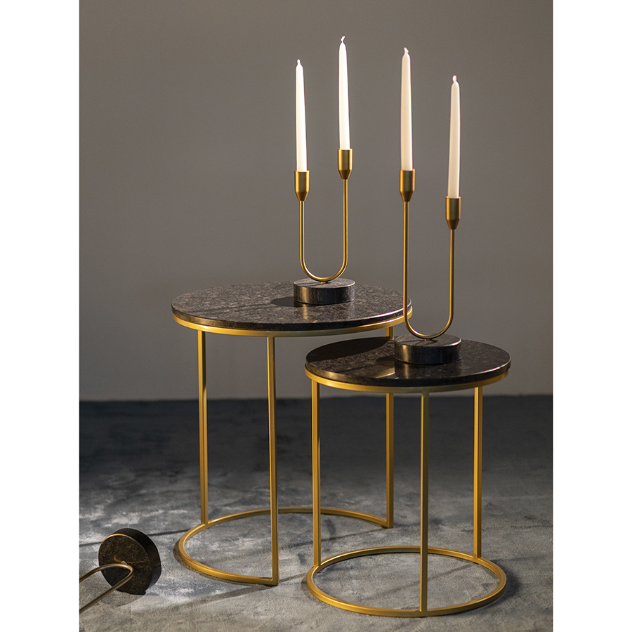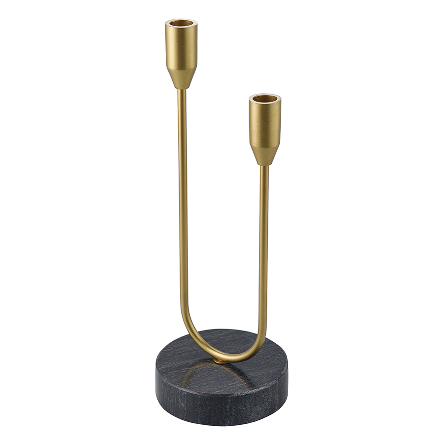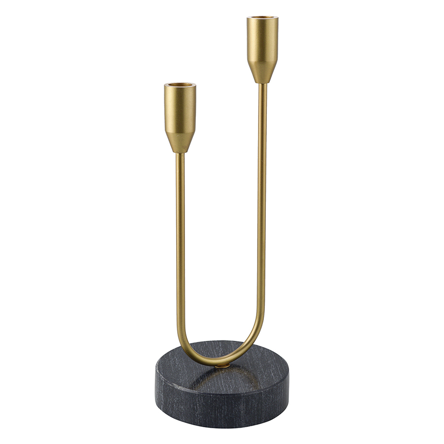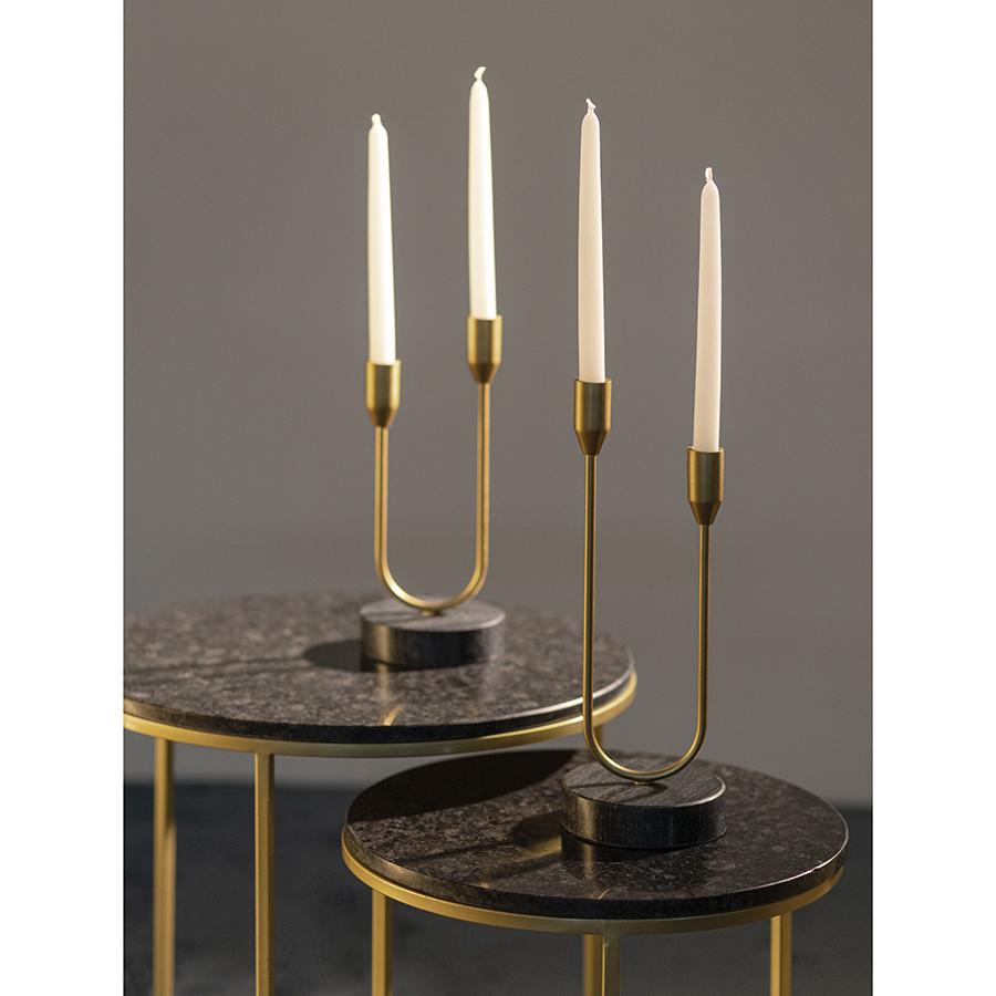 Подсвечник Dobbel – прекрасный способ добавить в интерьер интересный акцент. Аксессуар имеет устойчивое основание из мрамора, от которого отходят два металлических рожка с чашами для свечей. Дизайн и цветовое решение подсвечника органично вписываются в пространства с современным и классическим оформлением.