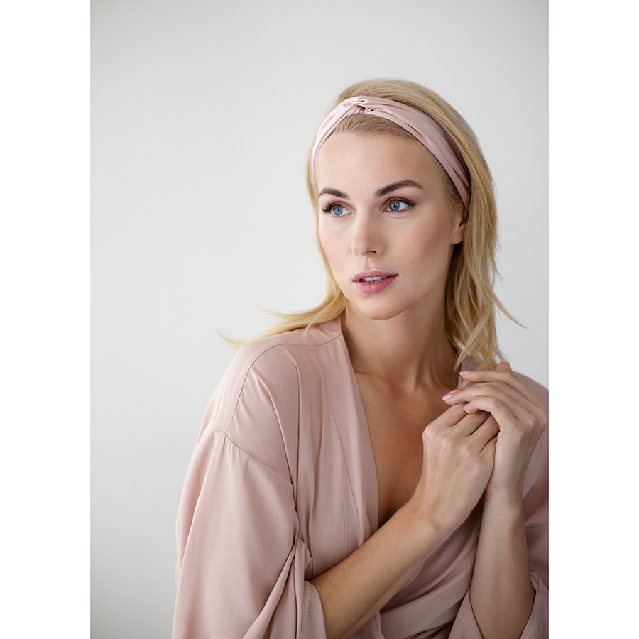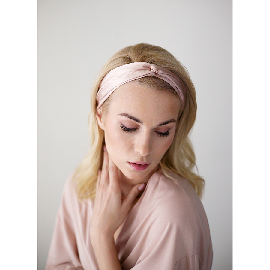 Повязка из натурального шелка цвета пыльной розы из коллекции Essential великолепно дополнит линейку любимых аксессуаров, придаст образу элегантность, а волосам – ухоженный вид. Вы можете надевать ее во время отдыха, сна или проведения косметических процедур.