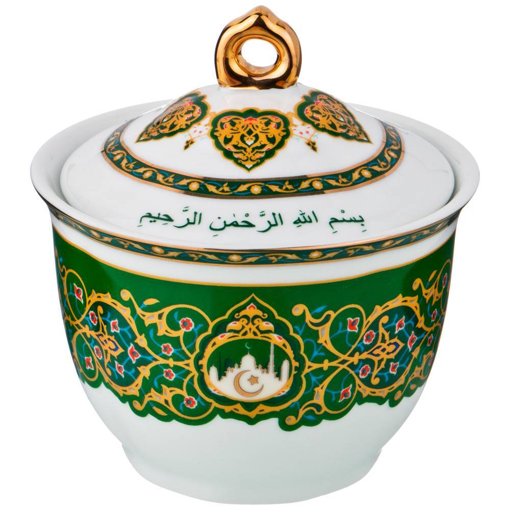 ТМ LEFARD представляет эксклюзивную коллекцию посуды «Восточный орнамент». Кувшины, чайники, сахарницы, кружки, чайные пары, декоративные тарелки и другие предметы выполнены из высококачественного тонкостенного фарфора. Восточный орнамент с отделкой золотом украшают изделия. Это прекрасный мусульманский подарок, всегда нужный и теплый. Относитесь к нему бережно и с почтением. Посуду коллекции можно использовать как в повседневной жизни, так и на торжественном приеме. Не рекомендуется мыть в посудомоечной машине и использовать в микроволновой печи.
