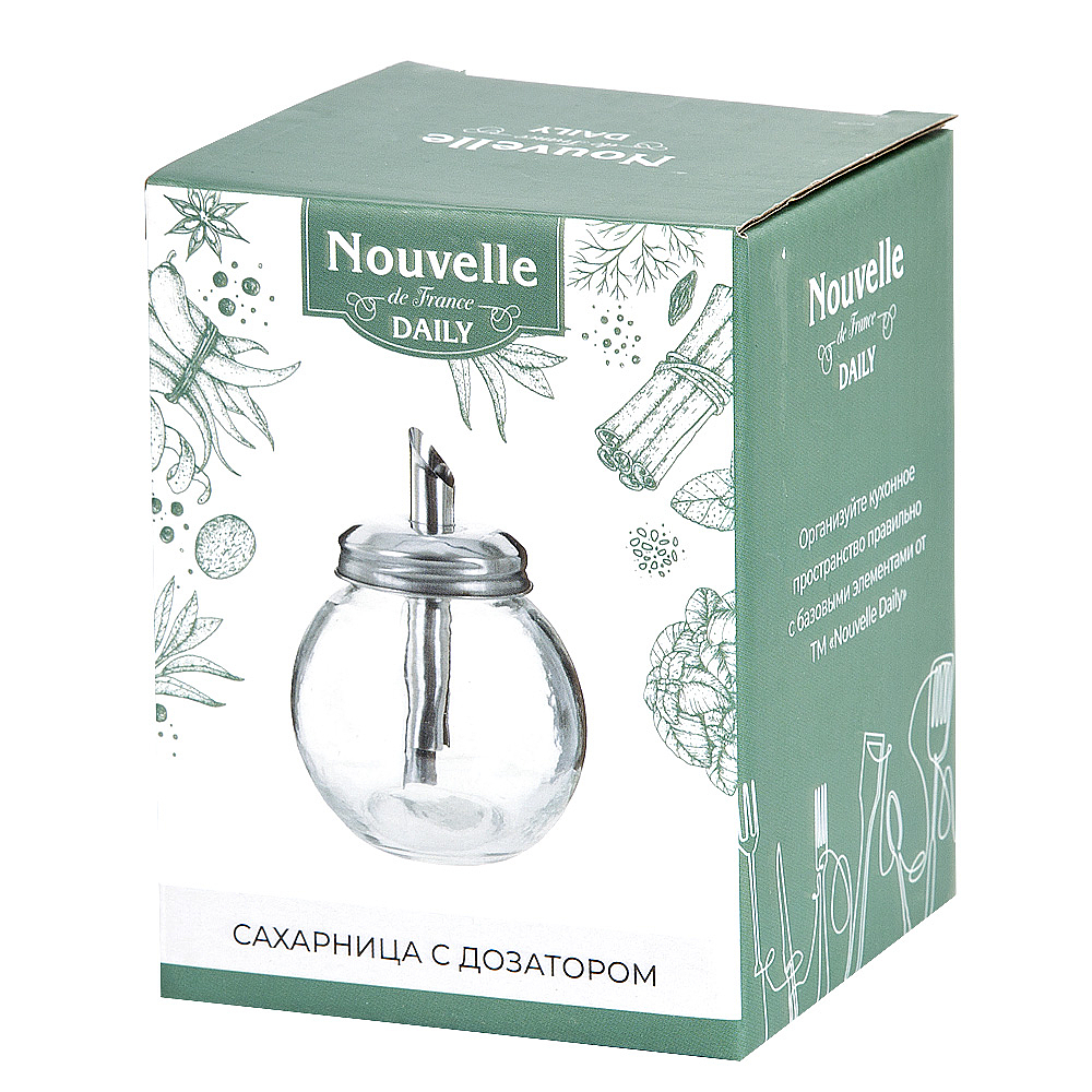 Сахарница с дозатором d=9см h=11см v=250мл (стекло/металл) (подарочная упаковка)