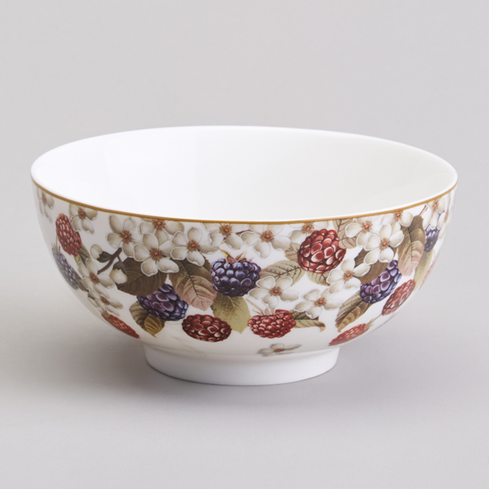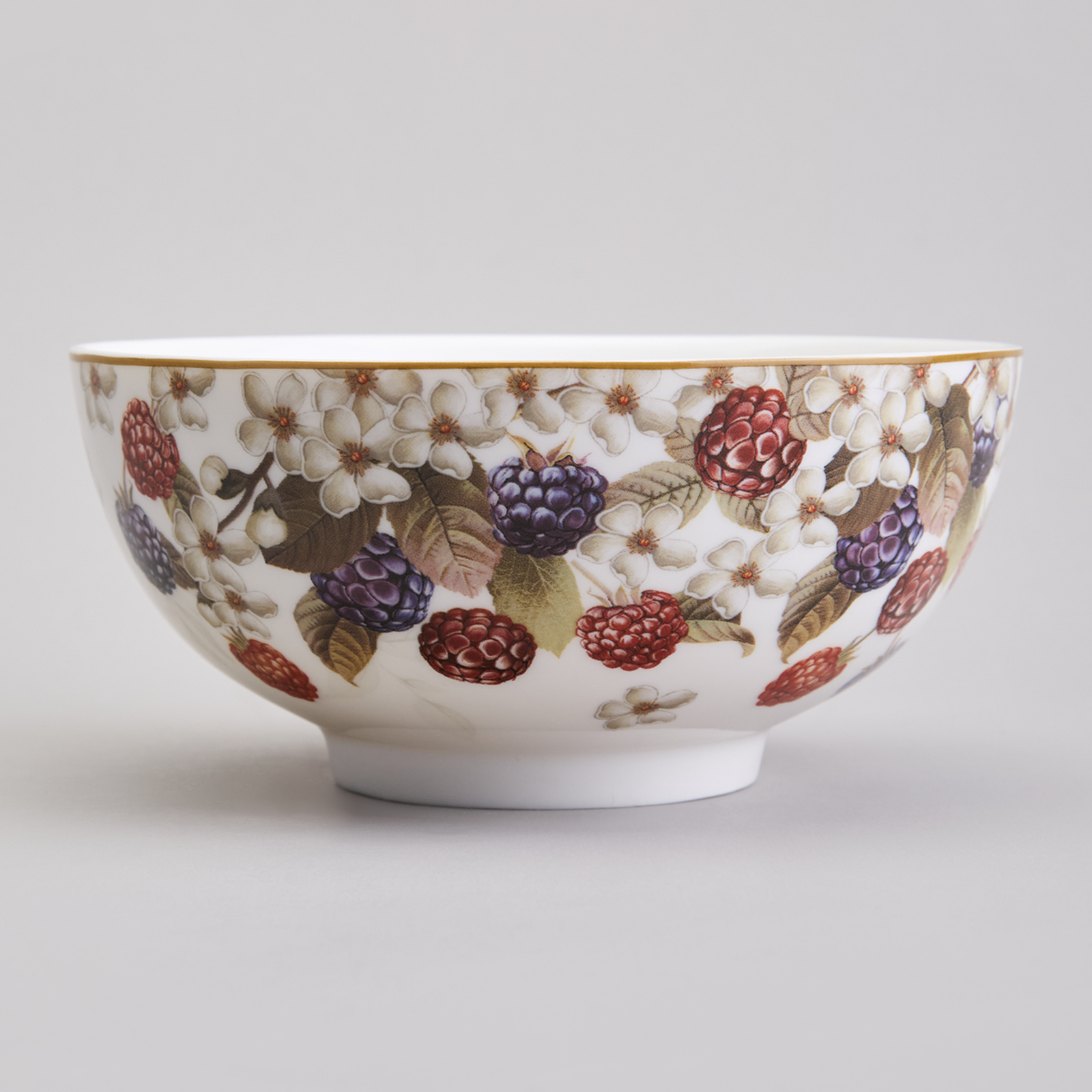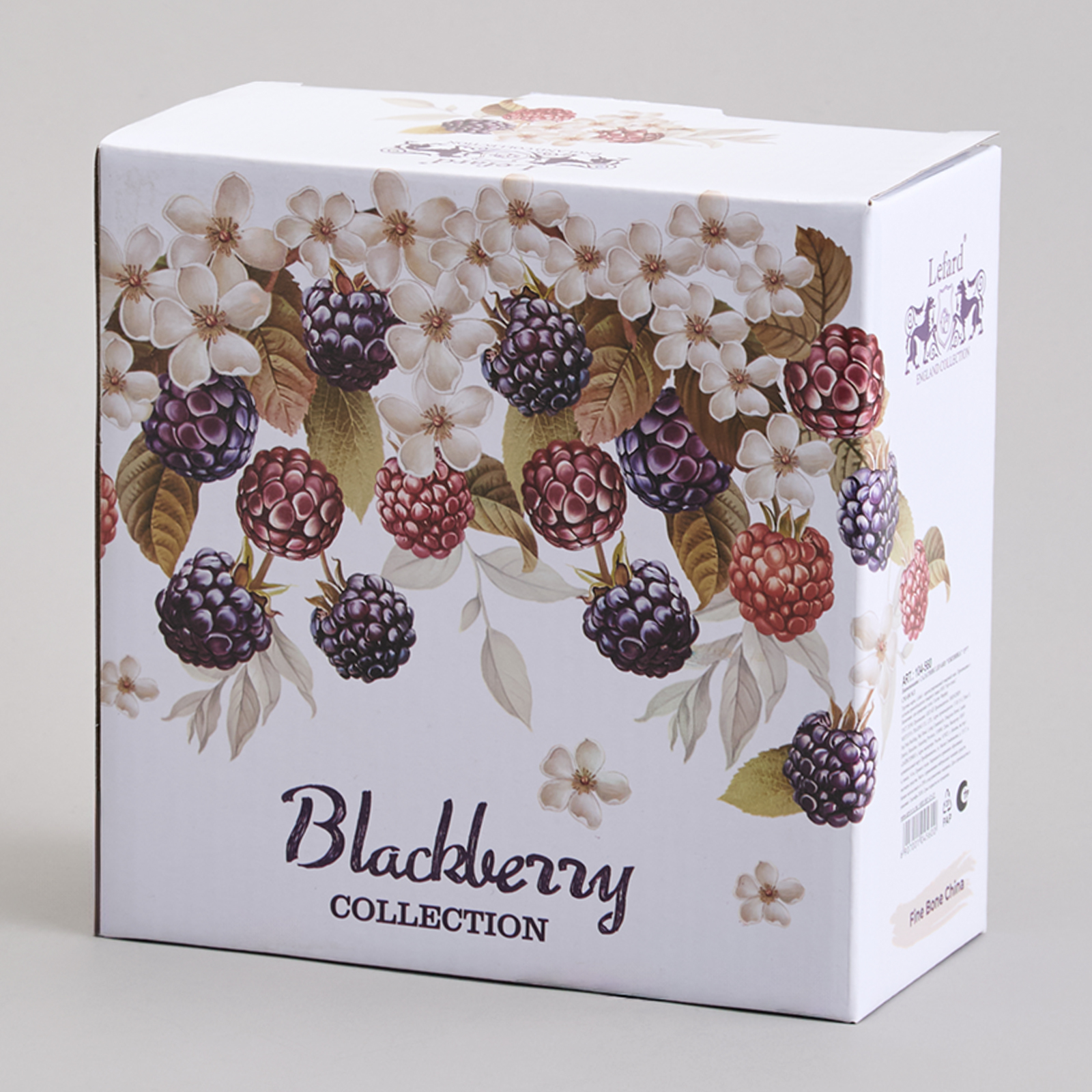 Коллекция "Ежевика" - свежий взгляд на уютную кухню и семейное чаепитие. Эта ягода становится все популярнее на домашнем столе. Джем, мармелад, начинка для выпечки, соус для мяса и утки, добавка во фруктовые салаты и молочные коктейли… Посуда из белоснежного костяного и тонкостенного фарфора с сочными ягодами ежевики станет украшением любого стола. Посуда безопасна для контакта с пищевыми продуктами, сертифицирована. Яркая упаковка делает ее отличным подарком для друзей и близких. Разрешено использование в микроволновой печи, можно мыть в посудомоечной машине мягкими моющими средствами.