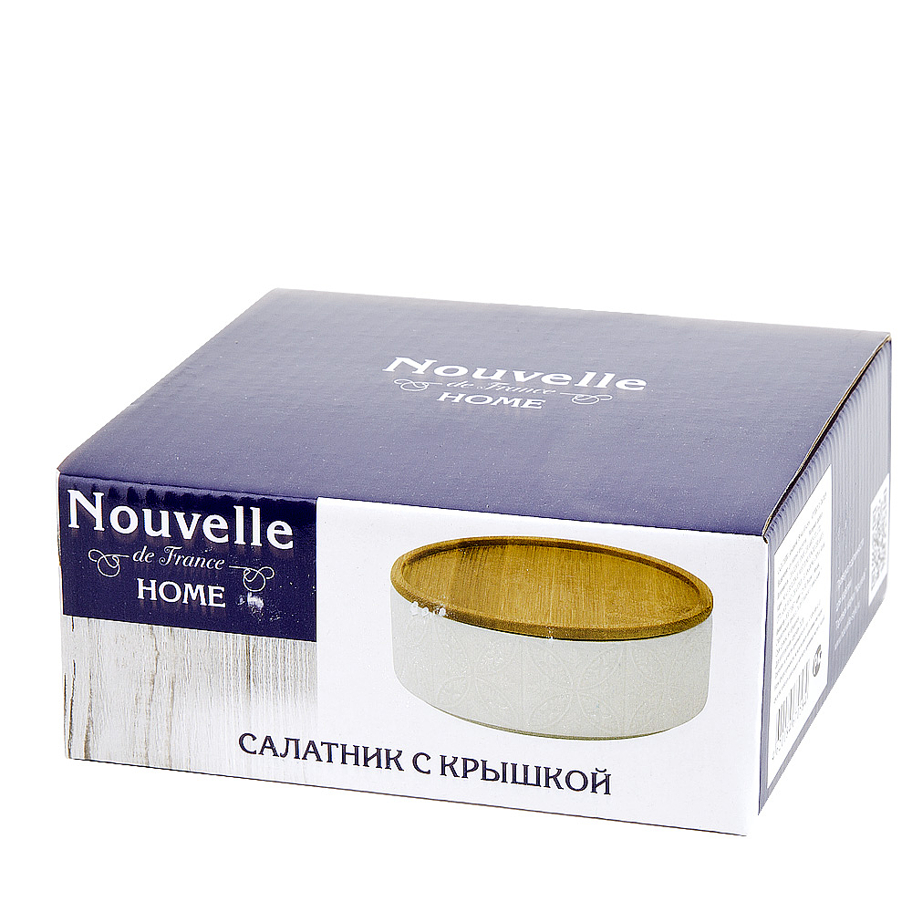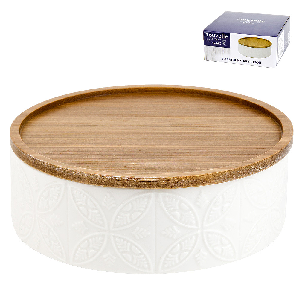 Салатник с бамбуковой крышкой "Naturel" v=350мл. d=14,5см. (подарочная упаковка)