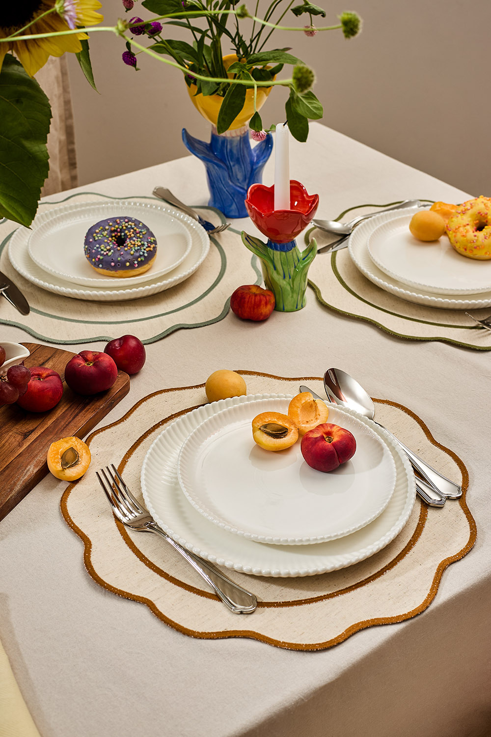 Салфетка под приборы Anemone из коллекции Trendy Ruffles с кантом цвета карри сделает любую сервировку стильной, позволив экспериментировать с текстурами и формами. Текстиль с волнистой отделкой, напоминающей изящные раковины морских гребешков, стал ярким элементом стиля Ар Деко – и сейчас возвращается в моду, появляясь в самых актуальных интерьерных решениях.