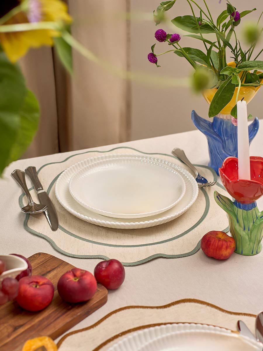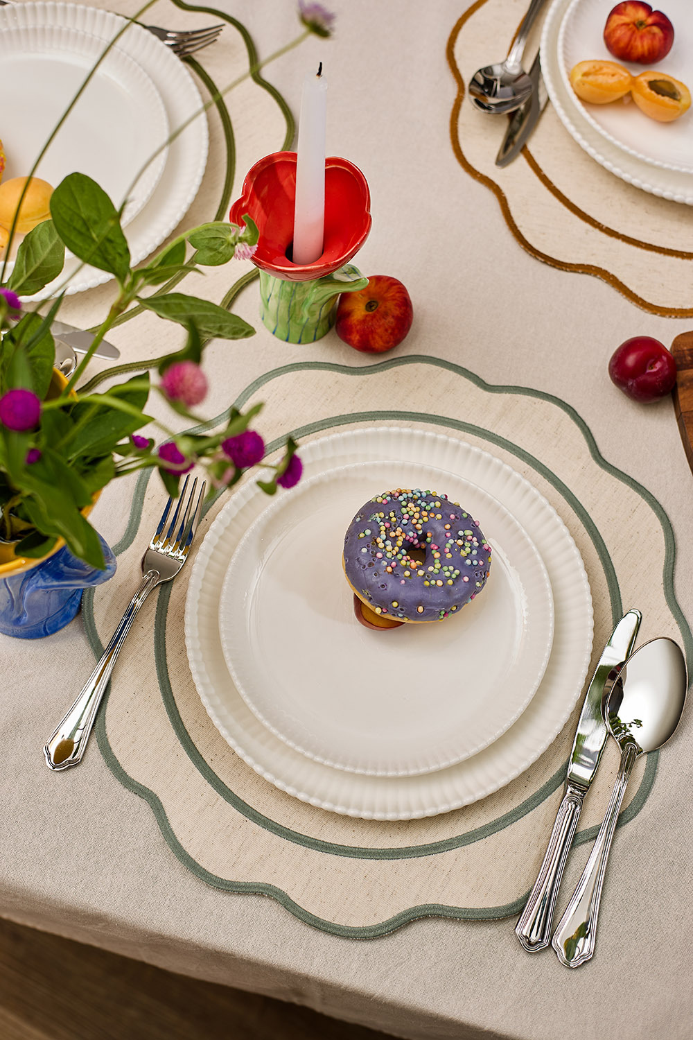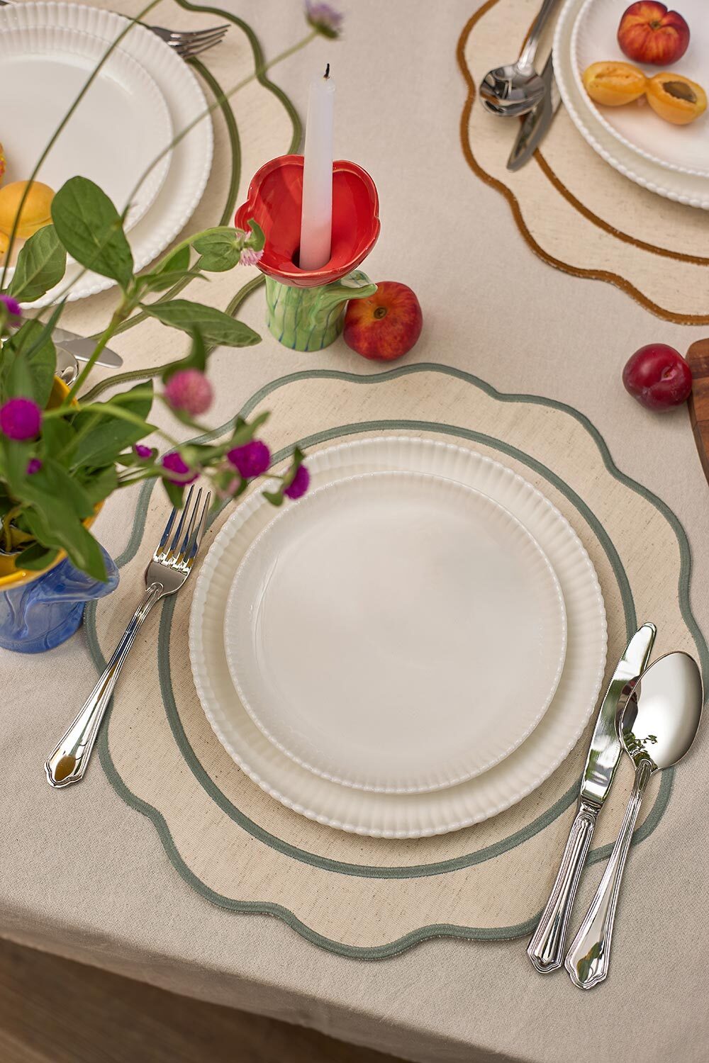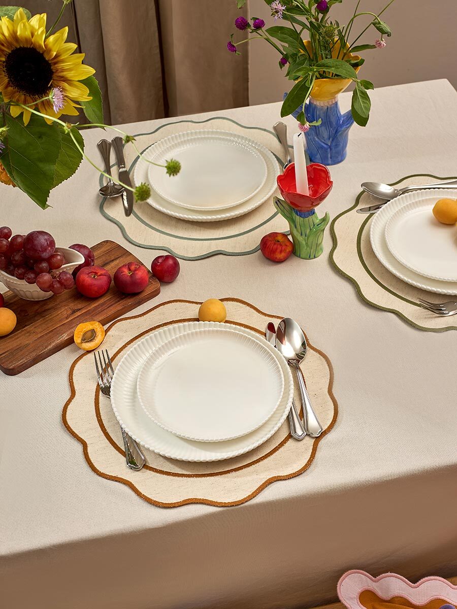 Салфетка под приборы Anemone из коллекции Trendy Ruffles с кантом серого цвета сделает любую сервировку стильной, позволив экспериментировать с текстурами и формами. Текстиль с волнистой отделкой, напоминающей изящные раковины морских гребешков, стал ярким элементом стиля Ар Деко – и сейчас возвращается в моду, появляясь в самых актуальных интерьерных решениях.