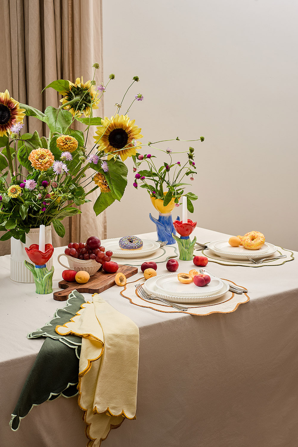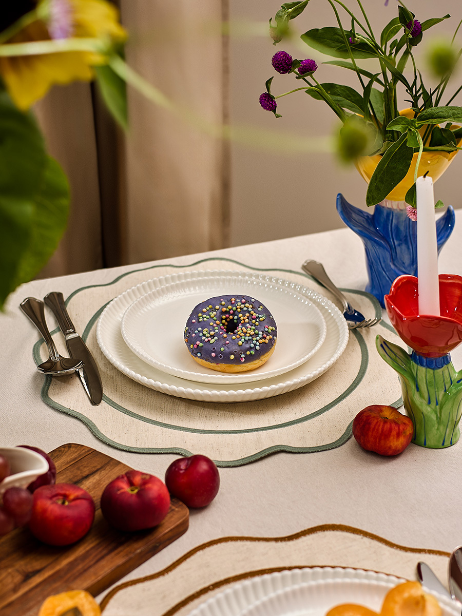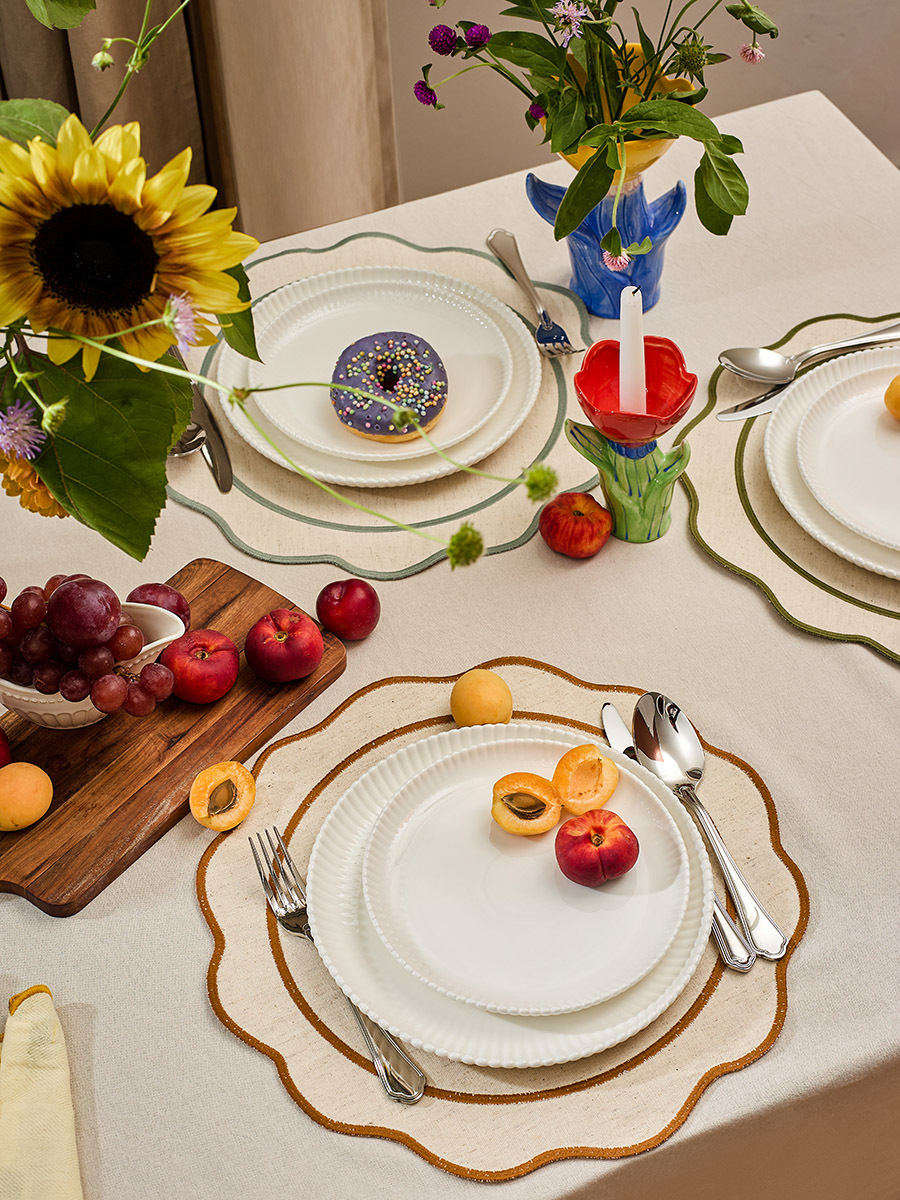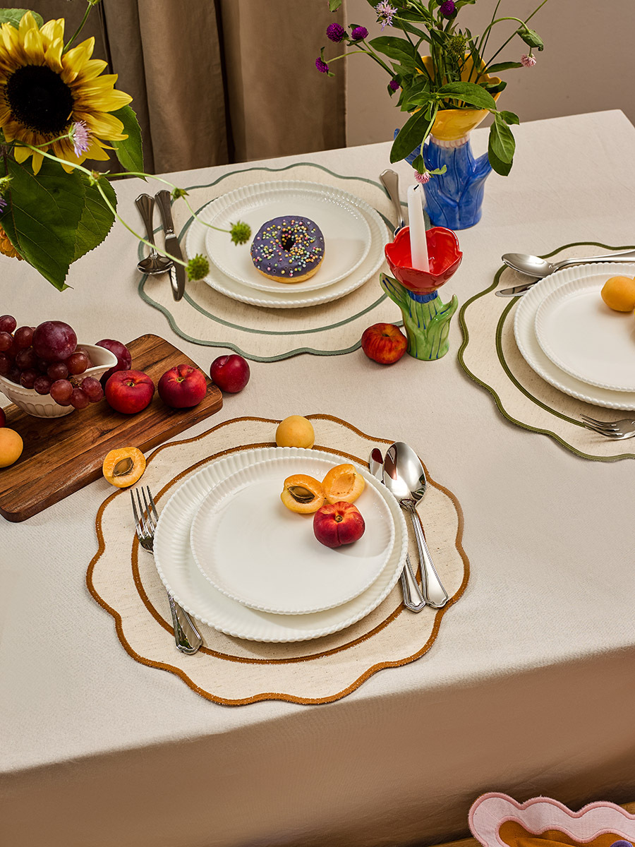 Салфетка под приборы Anemone из коллекции Trendy Ruffles с кантом серого цвета сделает любую сервировку стильной, позволив экспериментировать с текстурами и формами. Текстиль с волнистой отделкой, напоминающей изящные раковины морских гребешков, стал ярким элементом стиля Ар Деко – и сейчас возвращается в моду, появляясь в самых актуальных интерьерных решениях.