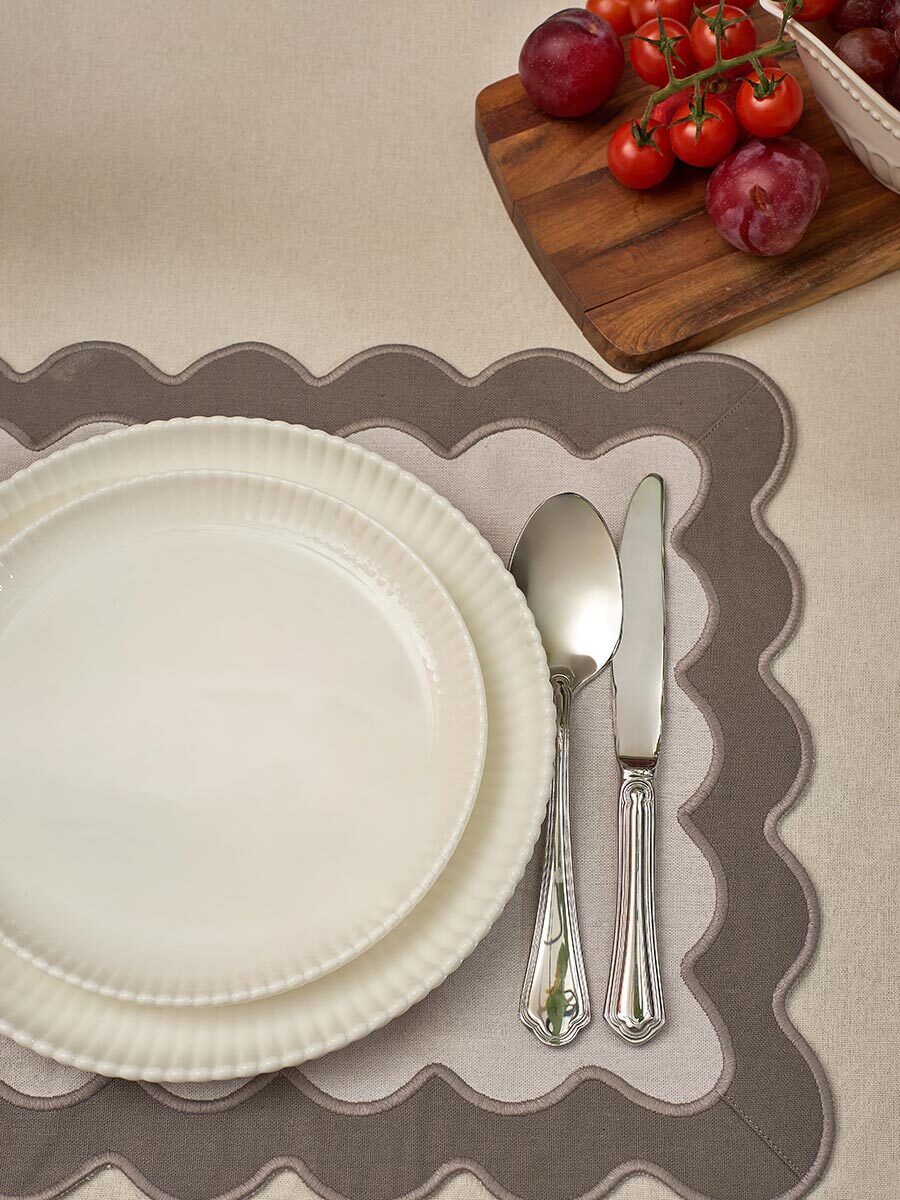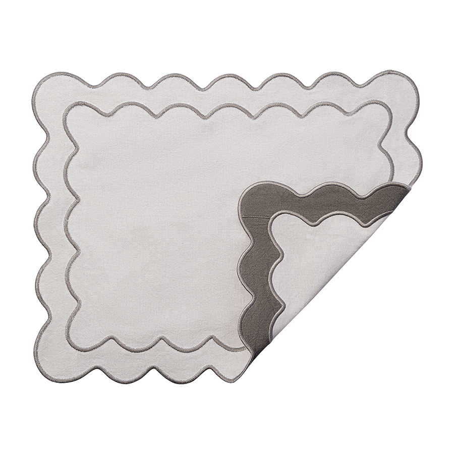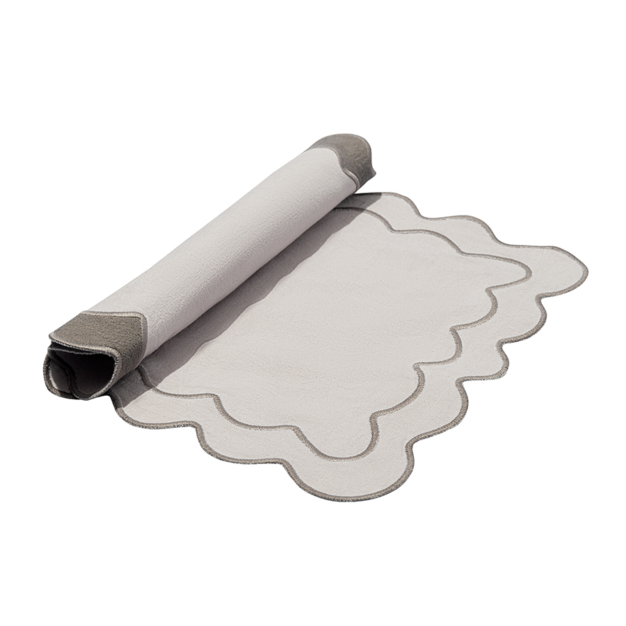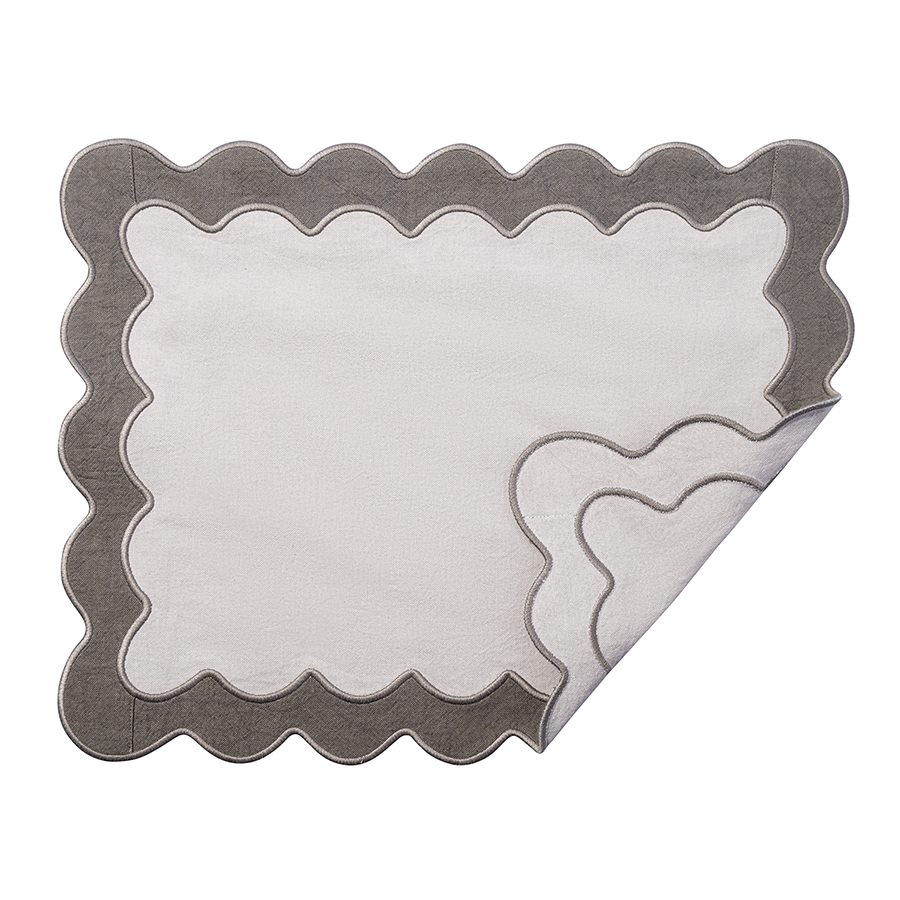 Салфетка под приборы с контрастным кантом серого цвета из коллекции Trendy Ruffles сделает любую сервировку стильной, позволив экспериментировать с текстурами и формами. Текстиль с волнистой отделкой, напоминающей изящные раковины морских гребешков, стал ярким элементом стиля Ар Деко – и сейчас возвращается в моду, появляясь в самых актуальных интерьерных решениях.